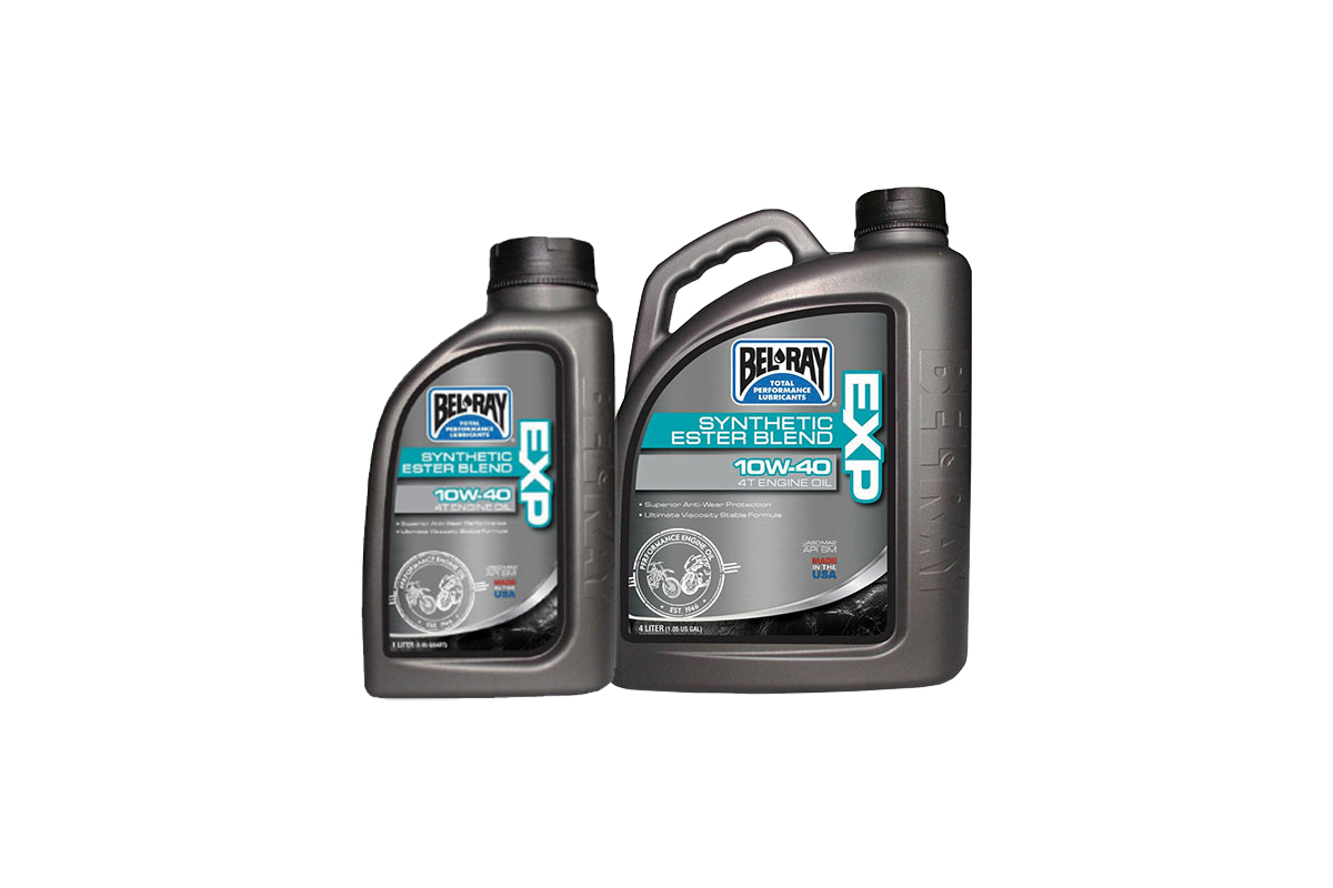 Υψηλής ποιότητας ημι-συνθετικό λιπαντικό της BEL-RAY για τετράχρονους κινητήρες. Η Bel-Ray εξειδικεύεται στη δημιουργία συνθετικών πρόσθετων κατάλληλων και ειδικά σχεδιασμένων για σύγχρονους υψηλής απόδοσης κινητήρες, χρησιμοποιώντας τεχνολογία που αποτρέπει την αλλοίωση του ιξώδους ακόμα και αν έχει περάσει μεγάλο διάστημα από την αλλαγή λιπαντικών. Αποτέλεσμα η μείωση της φθοράς του κυλίνδρου καθώς και το καθάρισμα του κινητήρα από τα εσωτερικά κατάλοιπα. Οι ειδικοί εστέρες ανταποκρίνονται στις ανάγκες ομαλής λειτουργίας των υγρών συμπλεκτών και ρυθμίζουν τη θερμοκρασία του κινητήρα καθώς μειώνουν τις τριβές. Τα λιπαντικά BEL-RAY EXP είναι πιστοποιημένα με προδιαγραφές: API SN και JASO MA2. Είναι για σύγχρονα scooter για Street & Off Road μοτοσυκλέτες και ανταποκρίνονται εξαιρετικά ακόμη και σε οδήγηση υψηλής έντασης. Διαθέσιμα σε ιξώδη: 10W40, 15W50, 20W50. www.motoway.gr MOTOWAY ΚΑΜΠΡΑΝΗΣ Α.Ε