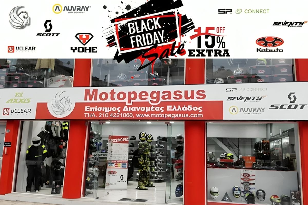 Black Friday&Cyber Monday φτάνουν στη Moto Πήγασος με 15% έκπτωση σε ΟΛΑ τα προϊόντα, είτε βρίσκονται ήδη σε προσφορά είτε όχι! Αυτό σημαίνει πως σε προϊόντα που έχουν ήδη μειωμένες τιμές που αγγίζουν εως και -50%, προστίθεται επιπλέον 15%, δημιουργώντας πραγματικά ακαταμάχητες εκπτώσεις! Παράλληλα , σε επιλεγμένα προϊόντα θα βρείτε έκπτωση 25%!
