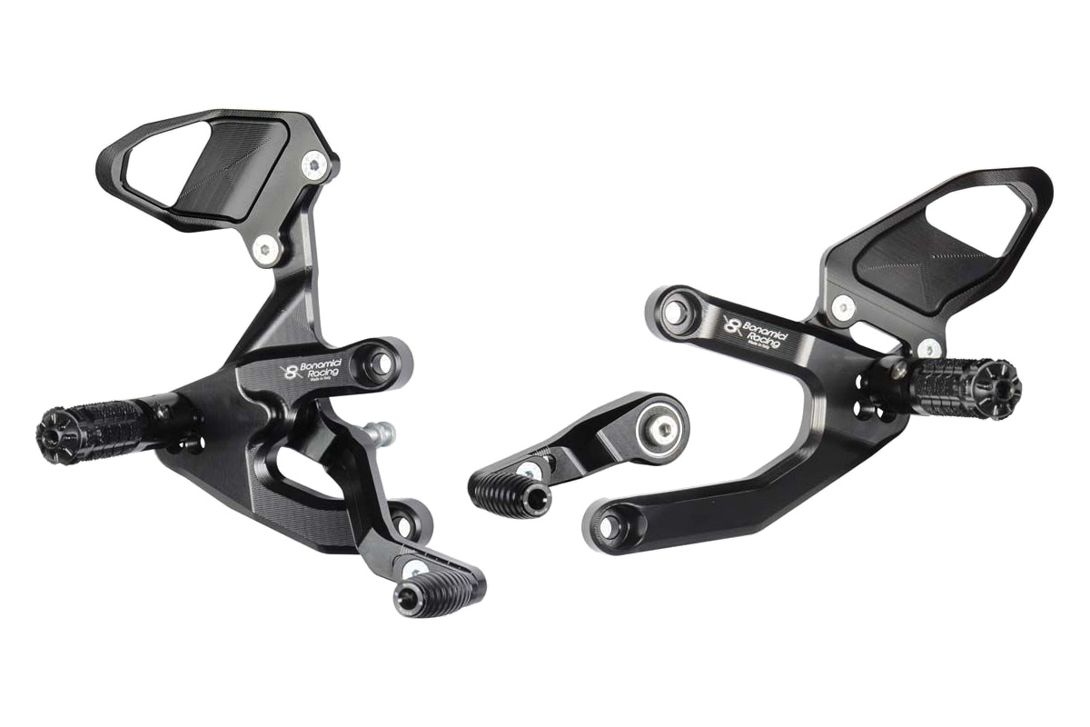 Η Bonamici Racing σχεδιάζει και κατασκευάζει σετ μαρσπιέ από αλουμίνιο, μεγάλης αντοχής, με τεχνολογία CNC. Διαθέτουν ρουλεμάν για την πλήρη εξάλειψη της τριβής στους μοχλούς και ένα ελατήριο για την υποβοηθούμενη επιστροφή του λεβιέ του πίσω φρένου, ενώ είναι δυνατή η προσαρμογή του πείρου ποδιών σε πολλές διαφορετικές θέσεις. Το εικονιζόμενο σετ είναι κατάλληλο για το BMW S 1000 XR και διατίθεται σε μαύρο ανοδιωμένο χρώμα. Για περισσότερες πληροφορίες, Καλλιρόης 12 Νέος Κόσμος, τηλ.: 2109242410, www.tecnomoto.gr, [email protected] TECNOMOTO PERFORMANCE