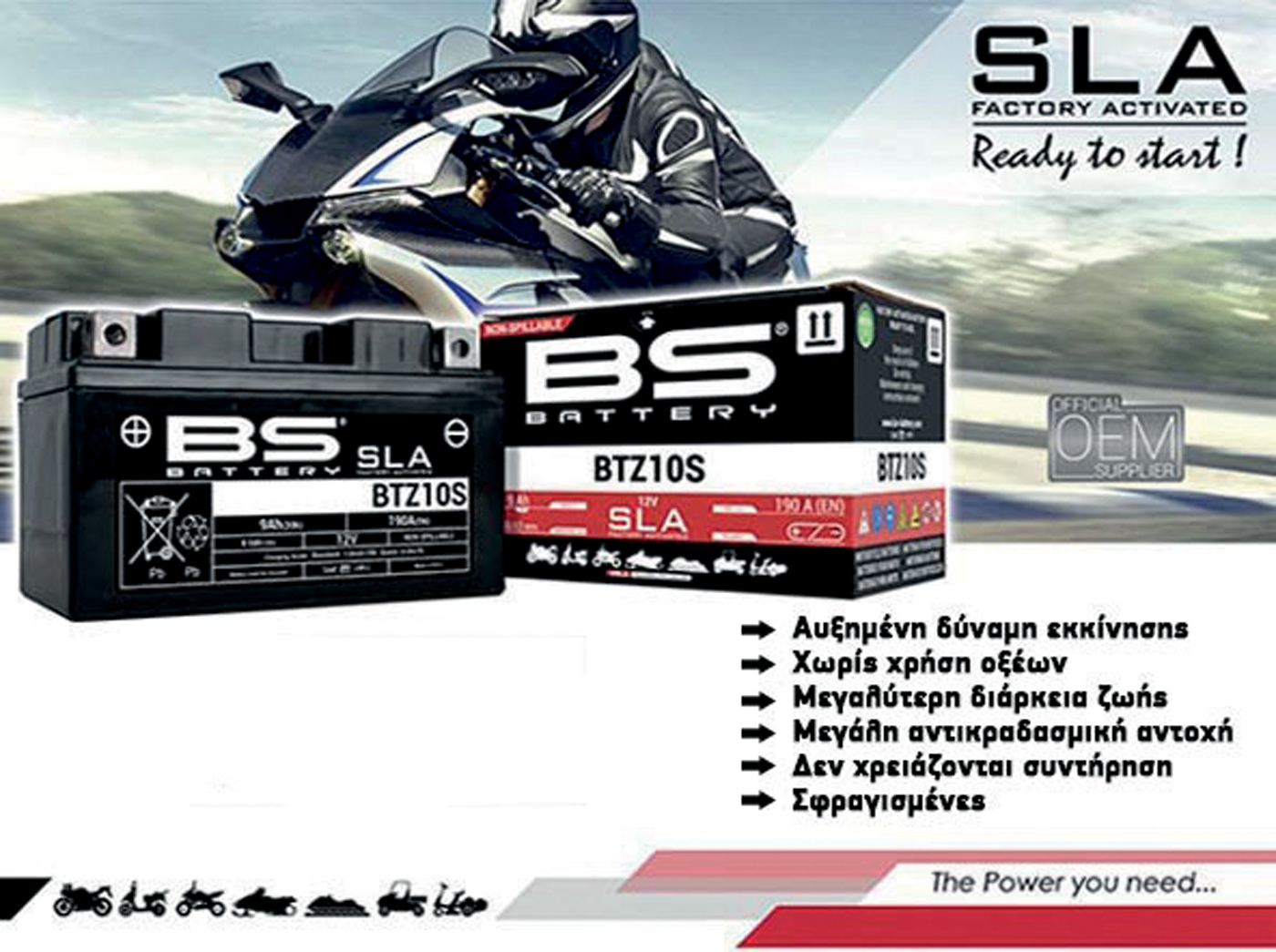 Η νέα γενιά μπαταριών τύπου SLA της BS Battery , κατασκευάστηκαν αποκλειστικά για την μεγαλύτερη ευκολία του χρήστη. Είναι κατασκευασμένες χωρίς την χρήση οξέων και φορτισμένες εργοστασιακά, προσφέροντας αμεσότητα χρήσης και την πρακτικότητα. Χαρακτηρίζονται για την αυξημένη δύναμη ενέργειας και την μεγαλύτερη διάρκεια ζωής ενώ χάρη στη συμπαγή κατασκευή τους προσφέρουν μεγάλη αντικραδασμική αντοχή. Παράλληλα δίνουν τη δυνατότητα για τοποθέτηση σε πολλές διαφορετικές θέσεις ανάλογα με τις ιδιαιτερότητες του κάθε μοντέλου. Για περισσότερες πληροφορίες :Τηλ: 210-92.22.776 / 210-34.13.733 www.alexopoulos.gr BIKE ALERT – ΑΛΕΞΟΠΟΥΛΟΣ ΕΠΕ
