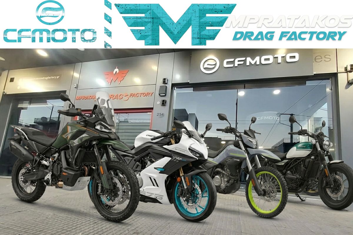 Όταν η κορυφαία τεχνολογία της CFMOTO συναντά την τεχνογνωσία του Mpratakos Drag Factory, το αποτέλεσμα είναι μια εμπειρία που κάθε λάτρης των δύο τροχών οφείλει να ζήσει. Το όνομα «MPRATAKOS» έχει ταυτιστεί με την απόλυτη εμπιστοσύνη στον χώρο της μοτοσυκλέτας, αποτελώντας τον προορισμό όπου το πάθος συναντά τον επαγγελματισμό! Στο εξής, πηγαίνει ένα βήμα παραπέρα, προσφέροντας τη μοναδική ευκαιρία για Test Ride στα πιο πολυαναμενόμενα μοντέλα της αγοράς! Από το ευέλικτο 250CL-C και το δυναμικό Dual 250, μέχρι την εκρηκτική τρικύλινδρη 675SR και την επιβλητική MTX 1000, ο δρόμος είναι πλέον ανοιχτός για να τα γνωρίσετε από κοντά και να νιώσετε την οδηγική τους ανωτερότητα πριν την τελική σας επιλογή.