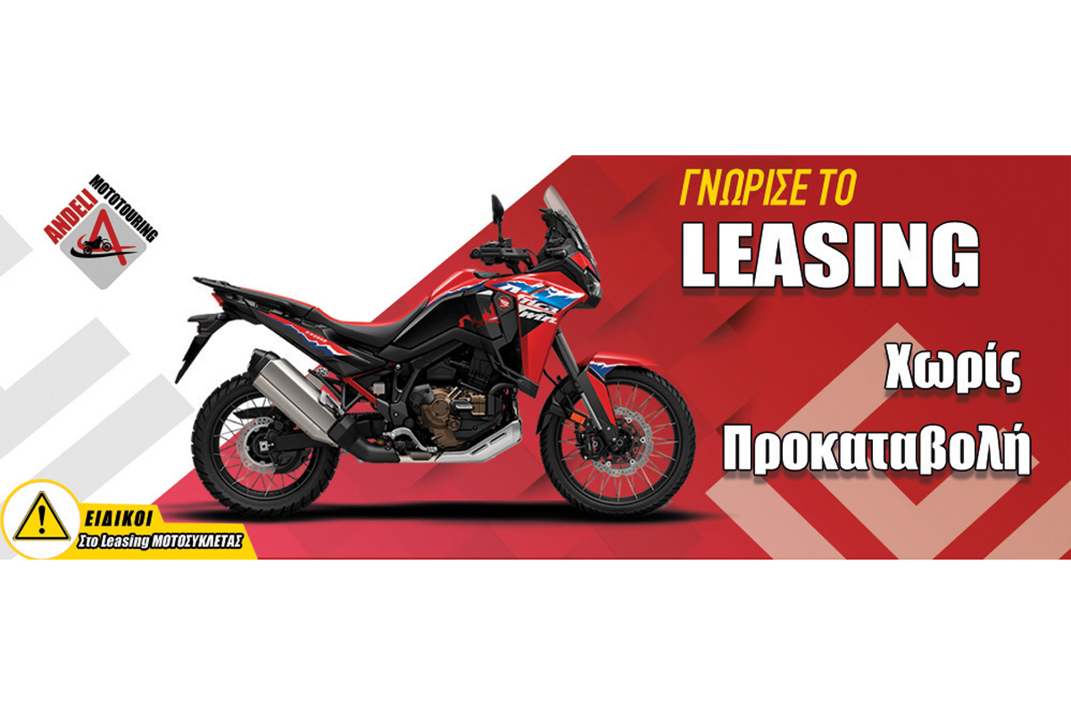 Αποκτήστε τώρα το αγαπημένο σας δίκυκλο HONDA με LEASING, εύκολα, ΧΩΡΙΣ προκαταβολή και με δυνατότητα εξαγοράς! Με πολυετή εξειδίκευση στη χρονομίσθωση μοτοσυκλέτας η ANDELI δίνει την δυνατότητα τόσο σε ιδιώτες όσο και σε επιχειρήσεις να αποκτήσουν ένα ολοκαίνουριο μοντέλο HONDA παρέχοντας παράλληλα ένα πακέτο υψηλών υπηρεσιών που εγγυώνται όχι μόνο την άψογη συντήρηση του δικύκλου αλλά και την ασφάλεια, χωρίς να δεσμεύσουν πολύτιμο κεφάλαιο ή να επιβαρυνθούν με υποχρεώσεις δανεισμού. Τα πλεονεκτήματά του προγράμματος: άμεση απόκτηση της μοτοσυκλέτας που εξυπηρετεί τις ανάγκες σας, έχετε πάντα τα πιο προηγμένα τεχνολογικά μοντέλα της αγοράς, επιλέγετε εσείς τον εξοπλισμό που εξυπηρετεί τις δικές σας ανάγκες (βαλίτσες, κάγκελα, συναγερμό) και άριστη συντήρηση της μοτοσυκλέτας σας σε εξουσιοδοτημένα συνεργεία, με χρήση μόνο γνήσιων ανταλλακτικών και απαλλαγή κόστους διαχείρισης της μοτοσυκλέτας. Από την εν λόγω ενέργεια προκύπτουν μεγάλα οικονομικά και φορολογικά οφέλη όπως: διατήρηση ρευστότητας, εξοικονόμηση φόρων, καλύτερος προϋπολογισμός εξόδων λόγω σταθερού μηνιαίου μισθώματος, αποφυγή κινδύνων όπως αύξηση επιτοκίων ή μείωση της αξίας μεταπώλησης των μοτοσυκλετών στη λήξη της μίσθωσης, απαλλαγή από κάθε διαχειριστικό κόστος κ.α. Επικοινώνησε με το έμπειρο προσωπικό της ANDELI και φτιάξε το δικό σου πακέτο χρονομίσθωσης, προσαρμοσμένο ακριβώς στις ανάγκες και τις απαιτήσεις σου! Λ. Μεσογείων 355, Χαλάνδρι / 2106533968 / [email protected] ANDELI MOTOTOURING