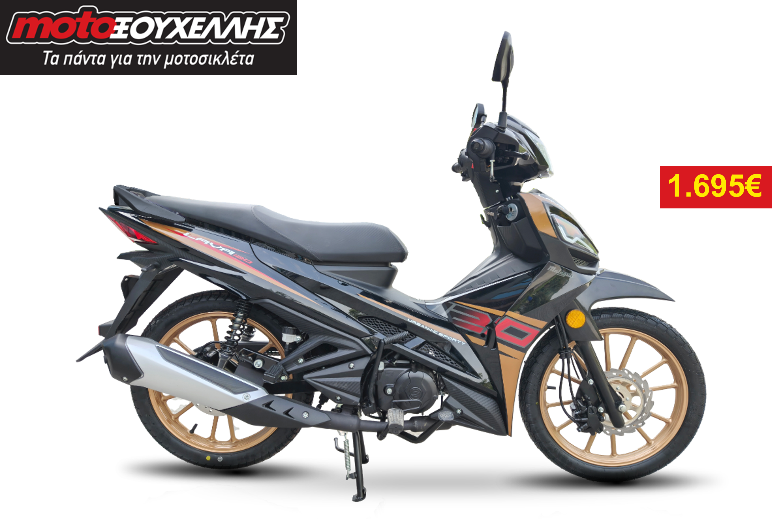 Το νέο Malaguti Lava 120 είναι η ιδανική επιλογή για όσους αναζητούν ένα πρακτικό και οικονομικό όχημα για τις καθημερινές μετακινήσεις. Το Lava 120 φέρει έναν μονοκύλινδρο αερόψυκτο κινητήρα 115 cc, εναρμονισμένο με προδιαγραφές Euro 5+, που αποδίδει 9,2 ίππους στις 7.000 στροφές και 0,91 kg.m ροπής στις 5.500 στροφές, διαθέτει δισκόφρενα μπρος-πίσω, που συνδυάζονται με CBS, συμβατικό τηλεσκοπικό πιρούνι μπροστά και δύο αμορτισέρ πίσω, με την διάσταση των τροχών να βρίσκεται στις κλασικές για παπί 17 ίντσες. Το βάρος του είναι στα 108 κιλά πλήρες υγρών, με τη χωρητικότητα του ντεπόζιτου στα 5 λίτρα και το ύψος της σέλας στα 780 mm. To Malaguti Lava 120 είναι διαθέσιμο σε τρία χρώματα μαύρο-χρυσό, μαύρο-κόκκινο και μαύρο-γκρι και η τιμή του έχει διαμορφωθεί στα 1.695 ευρώ. Για περισσότερες πληροφορίες Θηβών 250, Περιστέρι 12133, Τηλ: 2105739298 motoxouhellis.gr ΜΟΤΟ ΞΟΥΧΕΛΛΗΣ