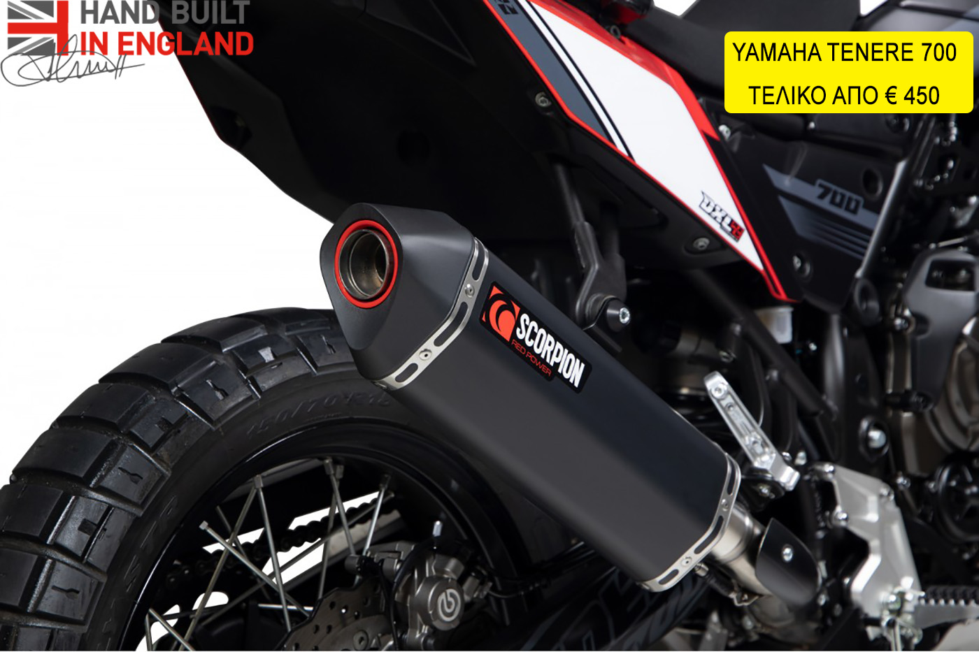 Βρετανικής προέλευσης χειροποίητες εξατμίσεις με τεχνογνωσία και εξέλιξη μέσα από την παρουσία της εταιρίας σε κορυφαίου επιπέδου και ανταγωνισμού αγώνες. Οι εξατμίσεις της Scorpion εξελίσσονται για κάθε μοντέλο ξεχωριστά και ξεχωρίζουν αισθητικά και λειτουργικά. Η μείωση του βάρους είναι αξιοσημείωτη οι επιδόσεις εντυπωσιακές ενώ ο ήχος μοναδικός. Διαθέσιμες στη γκάμα θα βρείτε σε Stainless Steel / Carbon Fibre / Titanium, σε ολόσωμες και τελικά ανάλογα το μοντέλο. Εκτός από την ευρεία ποικιλία εξατμίσεων για μοτοσυκλέτες η Scorpion διαθέτει και εξατμίσεις και για scooter. Ενδεικτικά τα μοντέλα που παρουσιάζονται είναι για TENERE 700, FORZA 300, TRACER 900, DL 650 V STROM. Διάθεση Χονδρική-Λιανική / Αποστολή σε όλη την Ελλάδα. Αποκλειστικός Αντιπρόσωπος: VASSALOS Moto Accessories, Αμφιθέας 131, 17563, Παλαιό Φάληρο, Τηλ: 2109322471 www.vassalos.gr VASSALOS