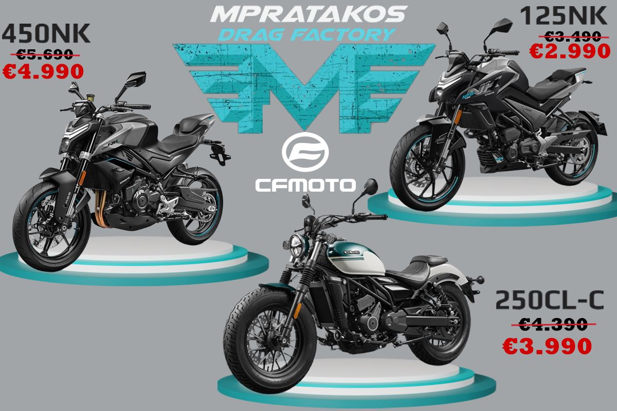 Στο Mpratakos Drag Factory θα βρείτε όλη τη γκάμα των μοτοσυκλετών CFMOTO, άμεσα διαθέσιμη και στις καλύτερες τιμές της αγοράς!