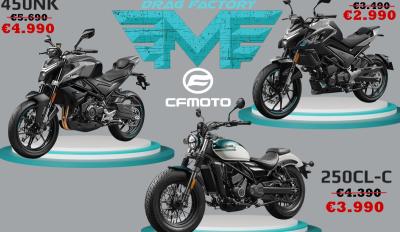 Τα δημοφιλή 450NK, 125NK και 250CL-C σας περιμένουν στο κατάστημα, με μειωμένες τιμές και μοναδικές προσφορές που κάνουν την απόκτηση της νέας σας μοτοσυκλέτας πιο εύκολη από ποτέ! Αν ψάχνετε δυναμικές, σύγχρονες και απόλυτα αξιόπιστες επιλογές, τότε η CFMOTO είναι η ιδανική επιλογή και το Mpratakos Drag Factory ο προορισμός σας.