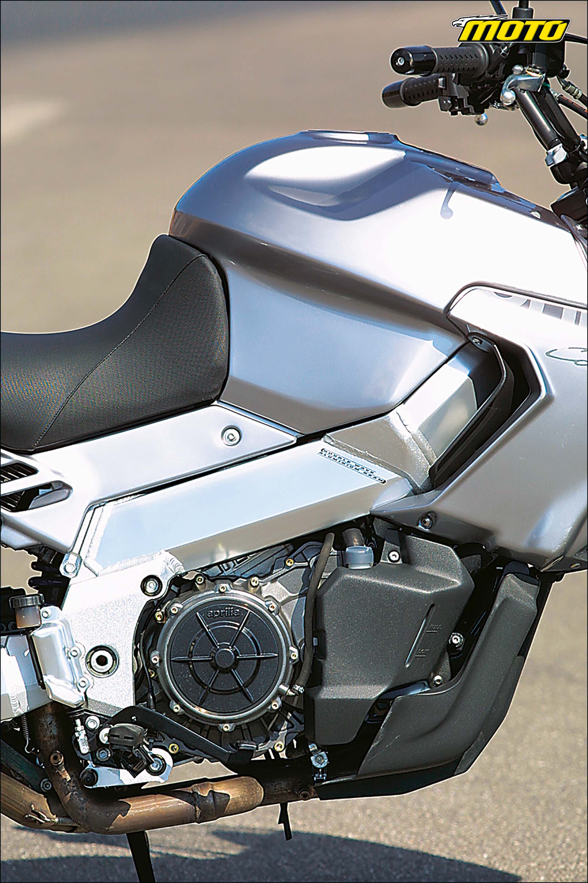 Αντιθέτως, πάνω στη σέλα του Caponord ακούγεται μάλλον περισσότερο το κροτάλισμα του ιταλικού δικύλινδρου παρά ο ήχος των τελικών. Με πολύ καλά αποτελέσματα όσον αφορά την προστασία από τον αέρα, δίχως όμως να φτάνει την παροιμιώδη ικανότητα του Varadero, ο αναβάτης του Caponord μένει απερίσπαστος να απολαμβάνει την έκρηξη της ροπής σε κάθε άνοιγμα του γκαζιού. Το ETV 1000 έχει κληρονομήσει μεγάλο μέρος από την αίσθηση του κινητήρα του Mille και μεταφέρει την ψευδαίσθηση ότι διαθέτει τουλάχιστον μισή ντουζίνα ίππους παραπάνω από το Varadero. Σ' αυτό βοηθά και το μακρύτερο γρανάζωμα, που επιτυγχάνει και τη μεγαλύτερη τελική, αλλά και η έμφαση που έδωσαν οι μηχανικοί της Aprilia στην ποιότητα και όχι στην ποσότητα, σ' ό,τι αφορά την κατανομή της δύναμης.