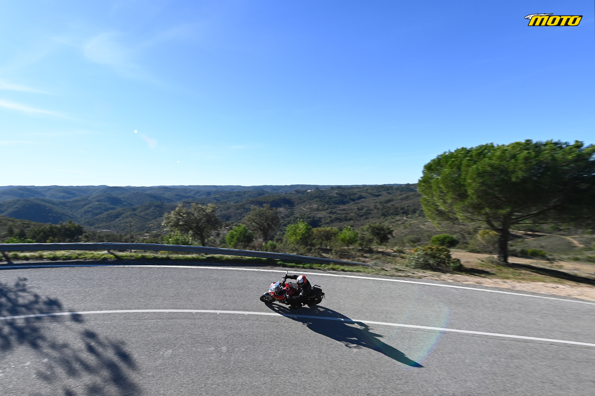 Παρέα με τους Άγγλους και Αμερικανούς συναδέλφους και λοιπούς καλεσμένους, βγήκα αμέσως μετά σε γνώριμους δρόμους της νότιας Πορτογαλίας για να πάρουμε μία πρώτη γεύση από τον τρόπο που επέλεξε η Triumph να τοποθετηθεί απέναντι στον ανταγωνισμό, κι ευτυχώς δεν διάλεξε την αντιγραφή, ούτε έβαλε πρωταρχικό στόχο την τιμή πώλησης.