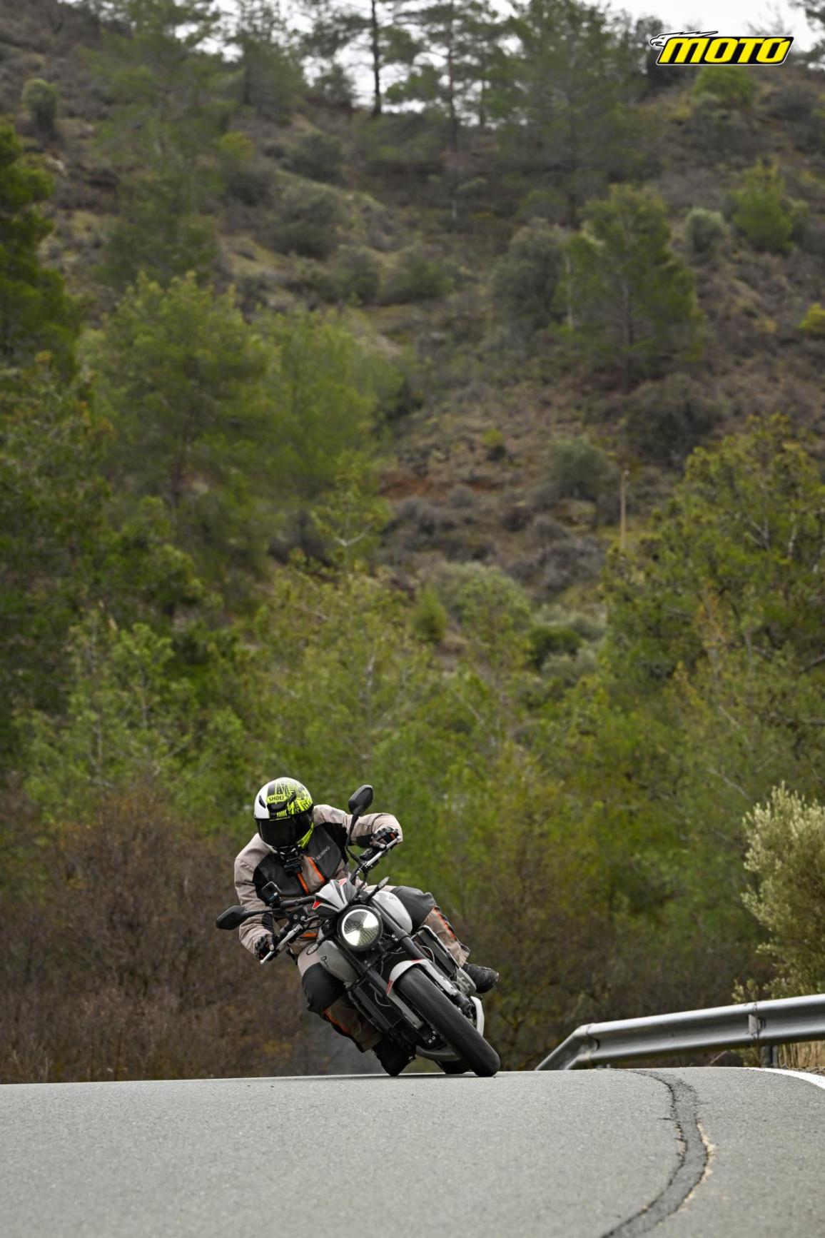 Αφαιρώντας το Traction Control είναι που το κυριότερο χαρακτηριστικό του τρικύλινδρου κινητήρα, δηλαδή η ευστροφία στις χαμηλομεσαίες με διάρκεια ψηλά, λάμπει ακόμη περισσότερο, όπως επίσης τονίζεται για ακόμη μία φορά μία βασική διαφορά έναντι των κινέζικων μοτοσυκλετών που έχουν κατακλύσει την Ευρώπη και που μεταξύ τους έχουν τεράστιες διαφορές αλλά πάσχουν και από κοινού σε ορισμένα ζητήματα: Η απόκριση στο γκάζι είναι υποδειγματική στο Trident 800, είναι με λίγα λόγια όπως ακριβώς θα έπρεπε να είναι και να μην αξίζει συγχαρητήρια καθώς αυτό το θέμα είχε πάψει να αποτελεί πρόβλημα από την περίοδο που μαρκάρεται μεταξύ Aprilia Shiver και Ducati Multistrada 950, την πρώτη γενιά της. Ανάμεσα εκεί, η απόκριση της γκαζιέρας ήταν κάτι που έπρεπε να σχολιαστεί, από τότε και μετά δεν ήταν προβληματική πουθενά αλλού μέχρι που ήρθαν νέες μάρκες, ενώ είδαμε ακόμη και πισωγυρίσματα στους εδραιωμένους κατασκευαστές. Το Trident 800 γίνεται τώρα το νέο παράδειγμα της αψεγάδιαστης λειτουργίας στην απόκριση για όλους όσους φέρνουν στην αγορά μοντέλα με τρικύλινδρους κινητήρες και σε συνθήκες μειωμένης πρόσφυσης χωρίς ηλεκτρονικά, είναι εξαιρετικά εύκολο να εκτιμήσεις την διαφορά.