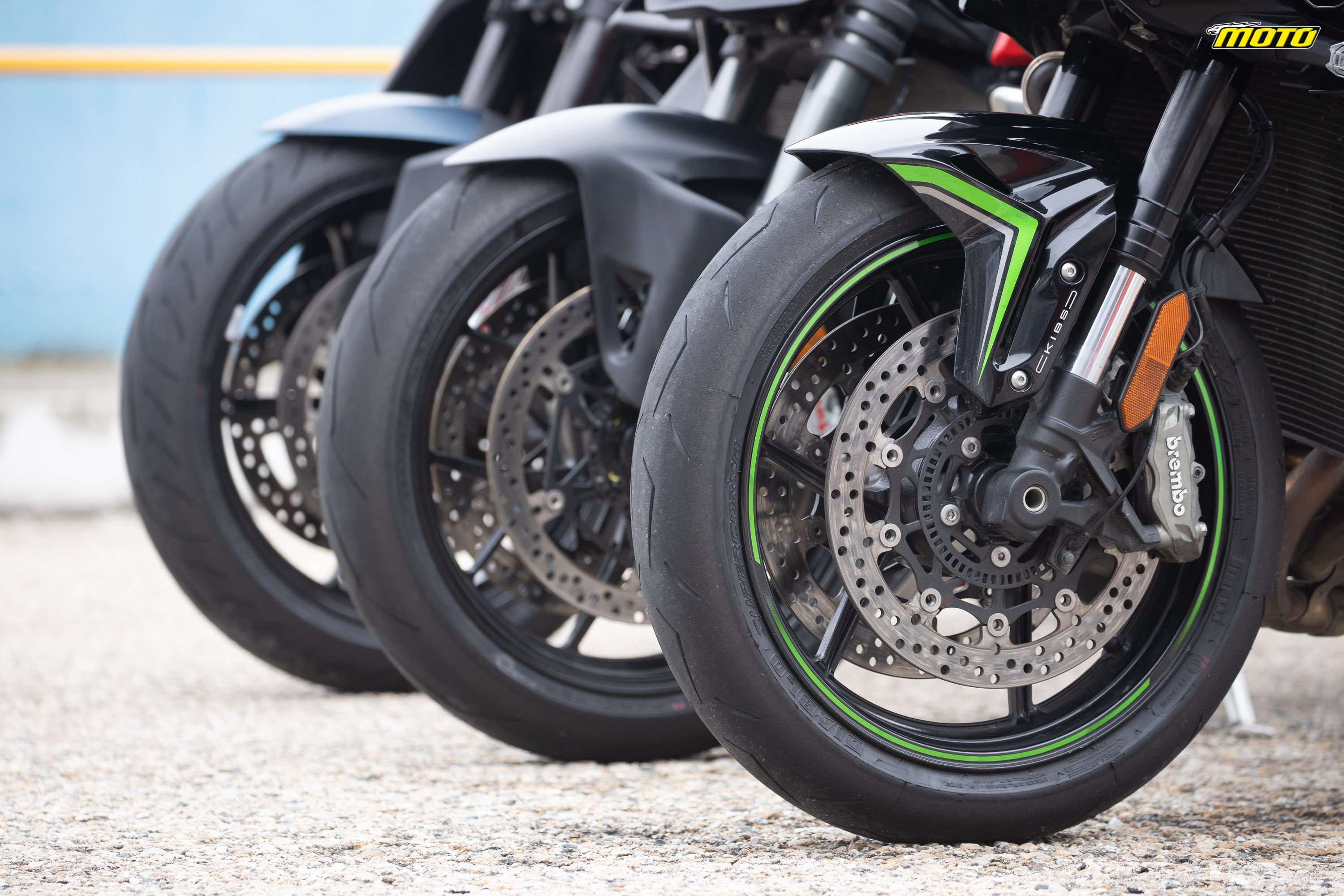 Στα πλαίσια του συγκριτικού τεστ των streetfighter που κάναμε στο δρόμο και στην πίστα των Σερρών, δοκιμάσαμε τρεις διαφορετικούς τύπους supersport ελαστικών του ομίλου Pirelli/Metzeler. Πρόκειται για τα Pirelli Supercorsa SP, Pirelli Supercorsa BSB και Metzeler M9 RR, όπου το πρώτο το βάλαμε στο Ducati Streetfighter V4, το δεύτερο στο Kawasaki Z-H2 και το τρίτο στο KTM 1290 Superduke R.