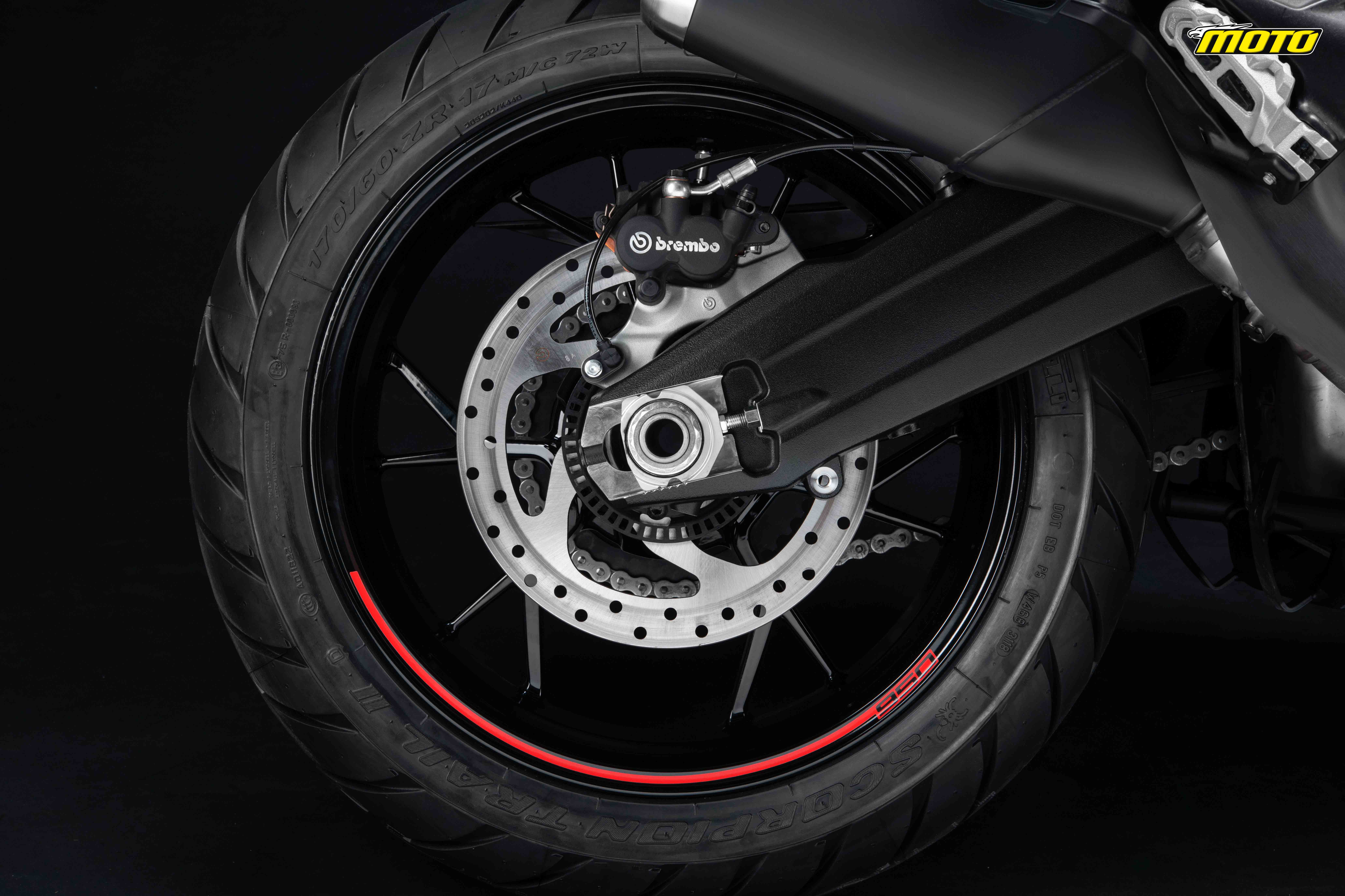 Όπως και στο προηγούμενο μοντέλο, έτσι και τώρα, μπορείς να επιλέξεις ανάμεσα σε χυτές ζάντες (νέου σχεδιασμού και 1 ολόκληρο κιλό ελαφρύτερες από πριν) ή με ακτινωτές tubeless και επιπλέον κόστος 800€ για το κόκκινο και 900€ για το άσπρο-γκρι μεταλλικό χρώμα. Για τη βασική έκδοση υπάρχει μόνο η επιλογή των ελαφρύτερων χυτών ζαντών που κρατάνε το συνολικό βάρος της μοτοσυκλέτας με γεμάτο το ρεζερβουάρ στα 230 κιλά, σε αντίθεση με τις ακτινωτές ζάντες που το ανεβάζουν στα 235 κιλά.