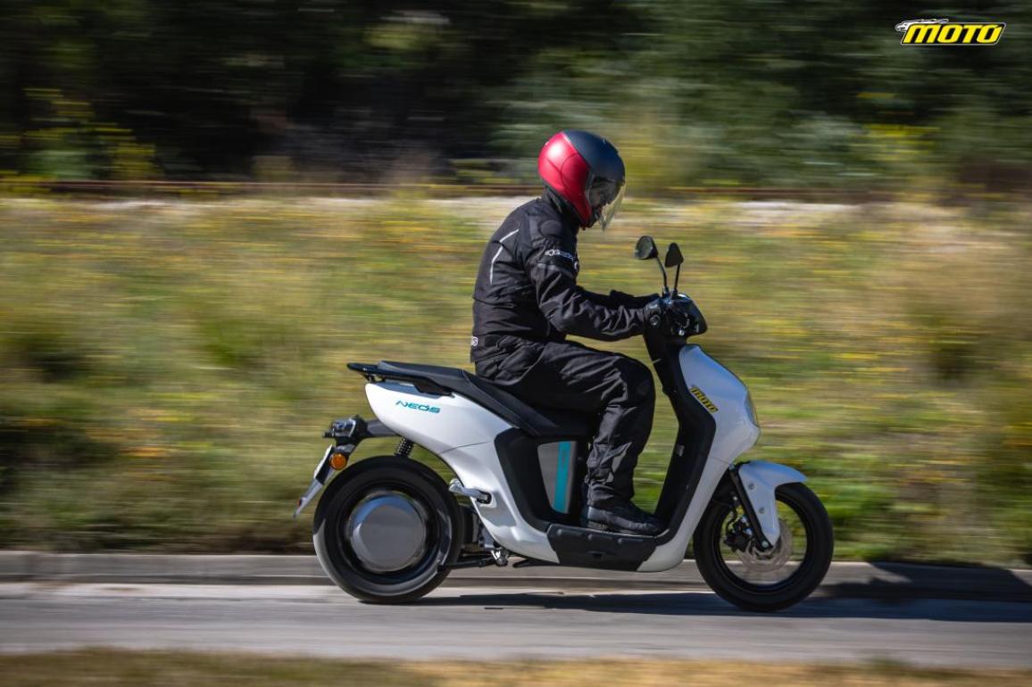 Ανυπομονείς να ανέβεις στη σέλα του NEO’s για να πατήσεις τη μίζα… μία στιγμή εδώ δεν υπάρχει μίζα αλλά ένα κουμπί που λέει “RUN”, πατώντας το ο ηλεκτροκινητήρας ο οποίος βρίσκεται στον πίσω τροχό και αποδίδει 2.300W συνεχούς ισχύος και 2.500W στην μέγιστη ισχύ του είναι έτοιμος για να κινήσει το scooter το οποίο με τις δύο μπαταρίες ζυγίζει 105,5 κιλά. Για να κατανοήσει κάποιος καλύτερα τις επιδόσεις του NEO’s η απόδοση του φτάνει τους 3,35 ίππους με την μέγιστη ροπή να αγγίζει τα 13,9 κιλά και την τελική του ταχύτητα να είναι στα 45 χλμ./ώρα… εμείς σε κατηφόρα είδαμε και 52. Ο χρήστης έχει στη διάθεση του δύο mode οδήγησης το ECO και το απλό, στην πρώτη περίπτωση αυτός περιορίζει την ταχύτητα έως τα 37 χλμ./ώρα ενώ στη δεύτερη ο αναβάτης μπορεί να εκμεταλλευτεί όλη τη δύναμη του ηλεκτροκινητήρα. Με το που γυρίσεις το δεξί γκριπ η απόδοση είναι ομαλή καθώς δεν υπάρχουν ξεσπάσματα ή υστέρηση στην επιτάχυνση. Το ΝΕΟ’s επιταχύνει γραμμικά χωρίς να σε απασχολεί κάτι άλλο ενώ χάρη στις μικρές διαστάσεις και το μικρό του βάρος η οδήγηση εντός πόλης γίνεται χωρίς κανένα πρόβλημα.