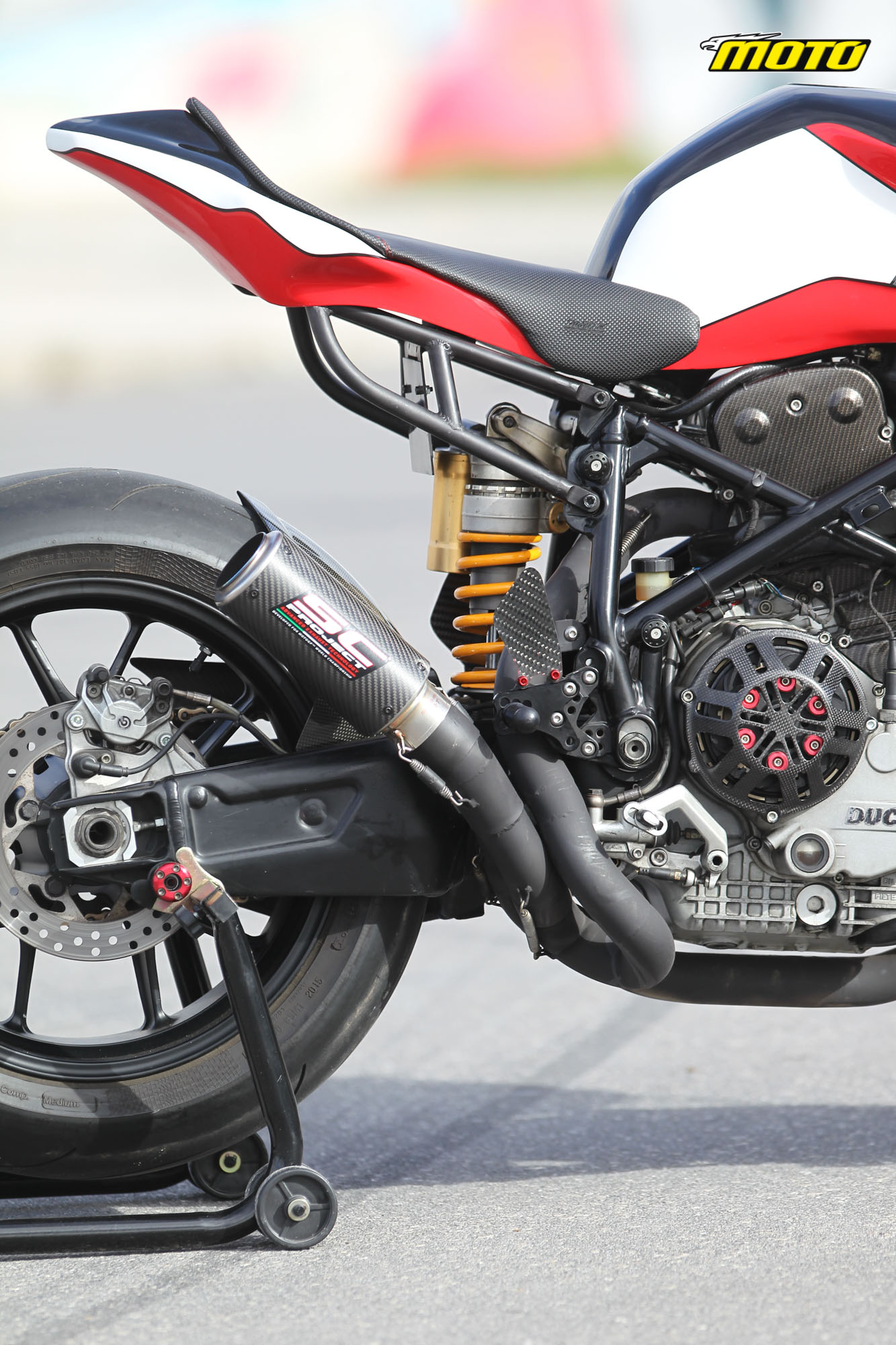 Ο κινητήρας δεν έχει αλλαγές, όμως οι αναρτήσεις της Öhlins με τα ακτινικά φρένα της Brembo είναι από μια Aprilia Tuono Factory. Το συνολικό μέγεθος της μοτοσυκλέτας είναι εμφανώς μεγαλύτερο από οποιοδήποτε SS έχει βγει από το εργοστάσιο της Ducati και την ίδια αίσθηση αποκομίζεις όταν την καβαλάς.