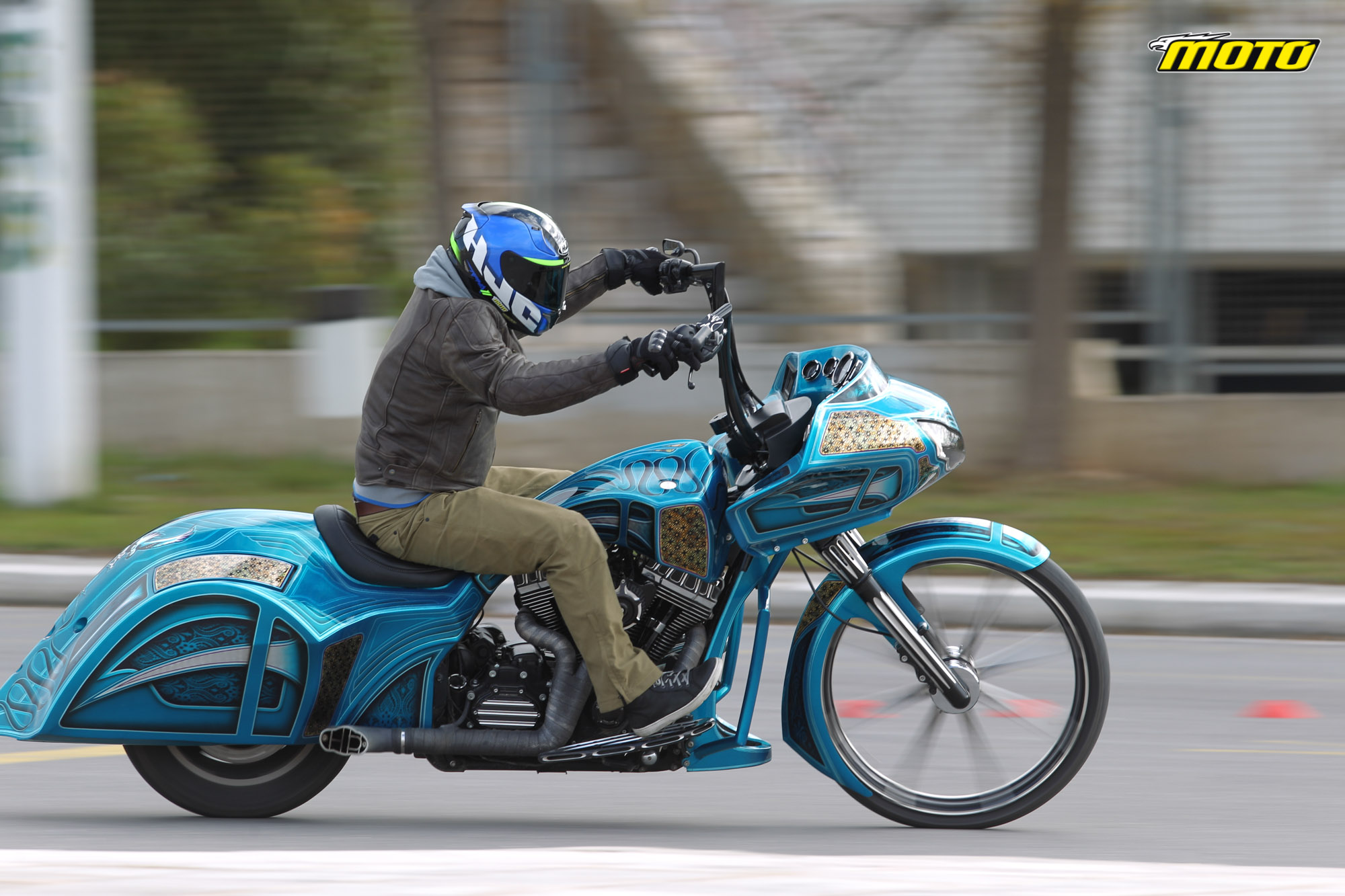 "Είσαι ο πρώτος και ο μοναδικός που θα οδηγήσει την μοτοσυκλέτα εκτός από εμένα", μου είπε ο Θοδωρής την ώρα που περιμέναμε να φουσκώσει η αερανάρτηση για να μπορεί να οδηγηθεί η μοτοσυκλέτα. Το Custom Street Glide του ήταν μια από τις πιο εντυπωσιακές παρουσίες του Test Ride. Δεν λέω η πιο όμορφη, γιατί αυτό είναι θέμα υποκειμενικό, αλλά δεν υπήρχε περίπτωση να μην χαζέψεις με το αποτέλεσμα της δουλειάς του Biker House που μέχρι στιγμής έχει κοστίσει σχεδόν 70.000 ευρώ. Είναι μια μοτοσυκλέτα που θα μπορούσες να δεις στο Daytona Bike Week να παρελαύνει στην παραλιακή λεωφόρο, ή να διαγωνίζεται σε κάποιο αμερικάνικο custom show.