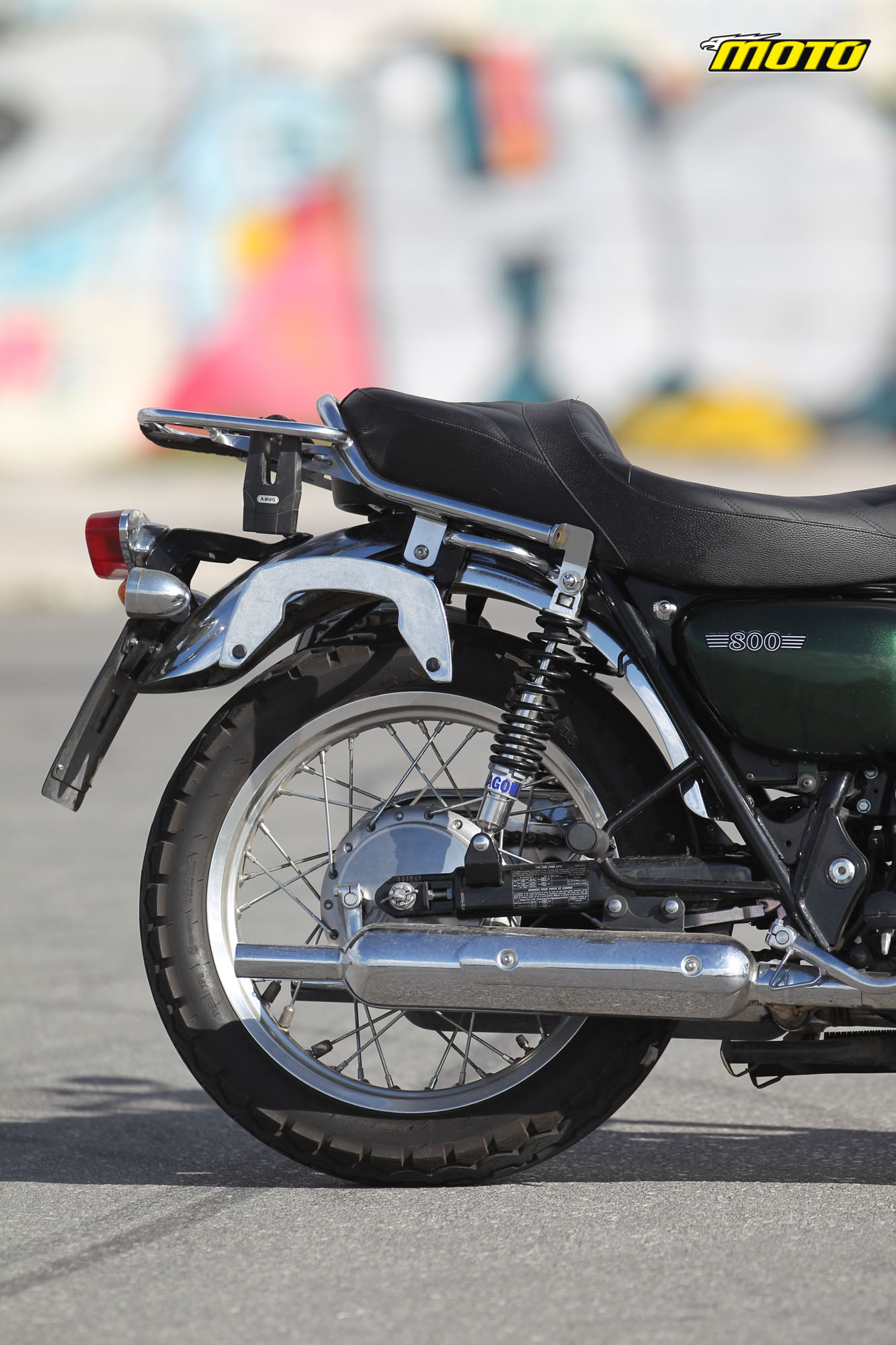 Η περίπτωση του συγκεκριμένου W 800 δεν είναι από εκείνες που δεν αναγνωρίζεις τι μοτοσυκλέτα ήταν πριν. Αντιθέτως είναι από εκείνες που πρέπει να αφιερώσεις λίγο χρόνο για να καταλάβεις ότι δεν πρόκειται απλώς για ένα W800 που έχει φορτωθεί με αξεσουάρ. Το σκεπτικό του Χρήστου ήταν να φτιάξει έναν σύντροφο για μακρινά, ήρεμα, διερευνητικά ταξίδια και η επιλογή του W800 ήταν η καλύτερη βάση για να ξεκινήσει. Σε αντίθεση με το W650 που έχει ένα ζωηρό κινητήρα που του αρέσει να δουλεύει σε όλο το φάσμα στροφών, το μεγαλύτερο W800 προβάλει ένα πιο αρχοντικό χαρακτήρα, με έμφαση στη ροπή. Είναι μια μοτοσυκλέτα με ήρεμη δύναμη και αυτό επηρεάζει άμεσα την ψυχολογία του αναβάτη. Με δύο πίσω αμορτισέρ της Hagon, ελατήρια της Bitubo στο πιρούνι, μία μέτριου μεγέθους ζελατίνα στο τιμόνι και με μια αφράτη-παχιά σέλα της Corbin, το συγκεκριμένο W800 είναι έτοιμο να φορτωθεί βαριά και να φύγει από την πόλη κρατώντας ξεκούραστο τον αναβάτη του για πολλές ώρες.