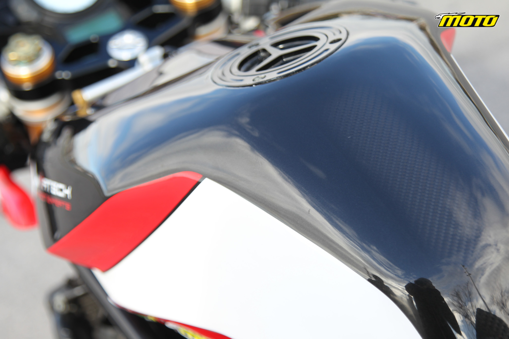 Ευτυχώς προλάβαμε και το φωτογραφίσαμε και το οδηγήσαμε, οπότε έχουμε δύο-τρία πράγματα να σας πούμε γι΄αυτό. Εμφανισιακά δεν έχουμε τρομερές αλλαγές ως προς το σχήμα της μοτοσυκλέτας, όμως οι χρυσές ζάντες (17 ιντσών αντί 18 εμπρός), το πιρούνι της WP και η εξάτμιση της Remus έχουν προσθέσει την απαραίτητη racing βαρβατίλα. Οδηγικά η συγκεκριμένη μοτοσυκλέτα είχε τα προβληματάκια της, πιθανότατα λόγω των φαγωμένων ελαστικών που είχαν αλλοιώσει το αρχικό σχήμα της κορώνας τους, δημιουργώντας ένα σκαλοπάτι όταν πλάγιαζες τη μοτοσυκλέτα. Αυτά συμβαίνουν όταν κάνεις burn-out…