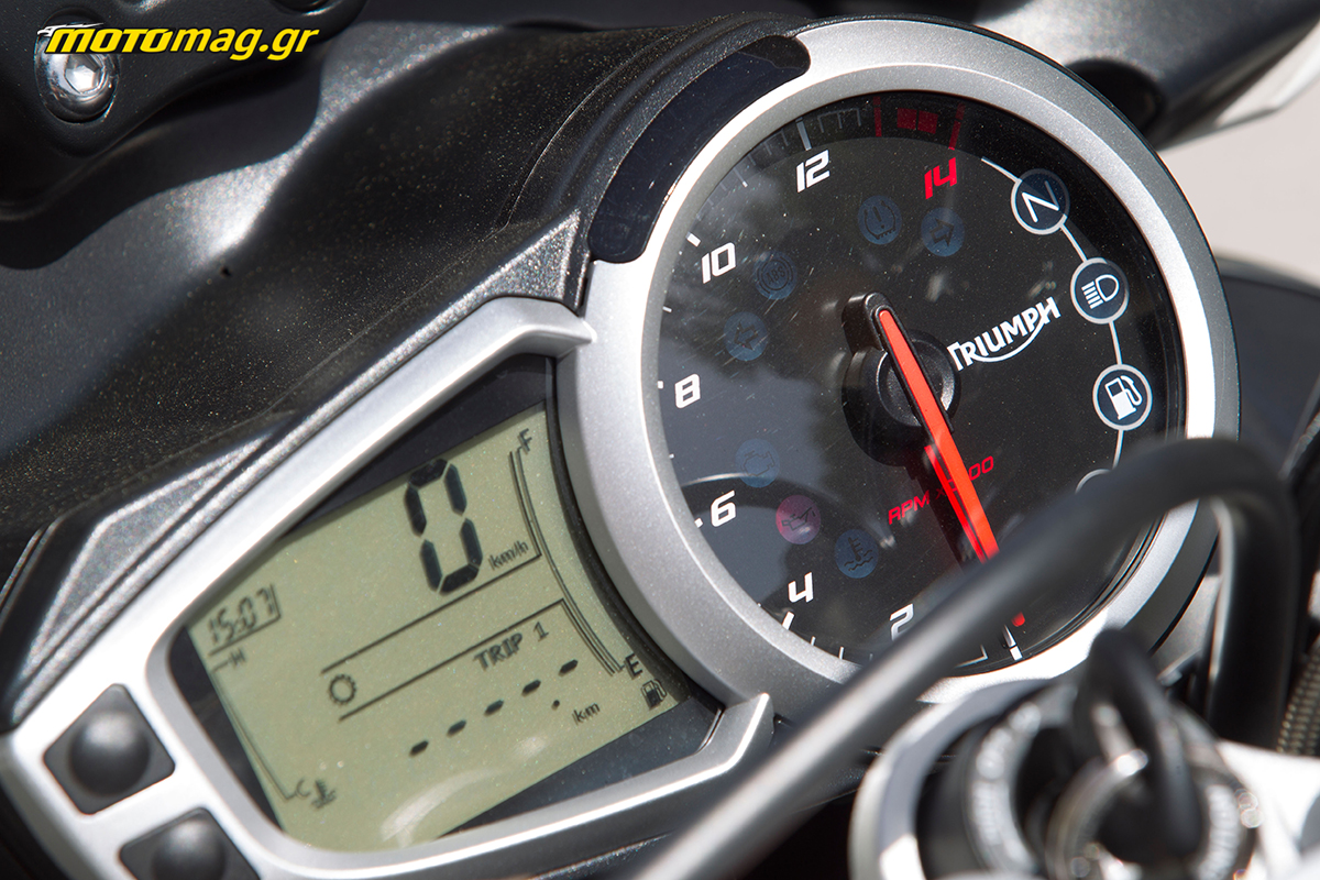 Τα χειριστήρια είναι πολύ μαλακά με σωστή αίσθηση και συνολικά η ποιότητα συναρμολόγησης βρίσκεται πάνω από το μέσο όρο της κατηγορίας, καθώς τα πάντα είναι άψογα φτιαγμένα και η συνολική εικόνα αρμόζει σε ακριβότερη μοτοσυκλέτα. Βρίσκεται ένα στάδιο πριν την τοποθέτηση του ride by wire που έχει περάσει στις μεγαλύτερες αδερφές, κάτι που θα την εφοδιάσει και με traction control, αλλά από εκεί και πέρα είναι μια απόλυτα ολοκληρωμένη μοτοσυκλέτα που δεν είναι τυχαίο ότι αποτελεί best seller για την Triumph. Φυσικά υπάρχουν και πράματα που δεν μου άρεσαν. Θα ήθελα το ABS να απενεργοποιείται με ένα απλό κουμπί, όπως και γενικά τα όργανα θα έπρεπε να αλλάζουν ενδείξεις από το τιμόνι. Το στάντ τόσα χρόνια βρίσκεται εκεί μέσα χωμένο και δεν ανοίγει εύκολα, ενώ τώρα που έμεινε χώρος στην ουρά θα μπορούσαν να μπουν και χειρολαβές συνεπιβάτη.