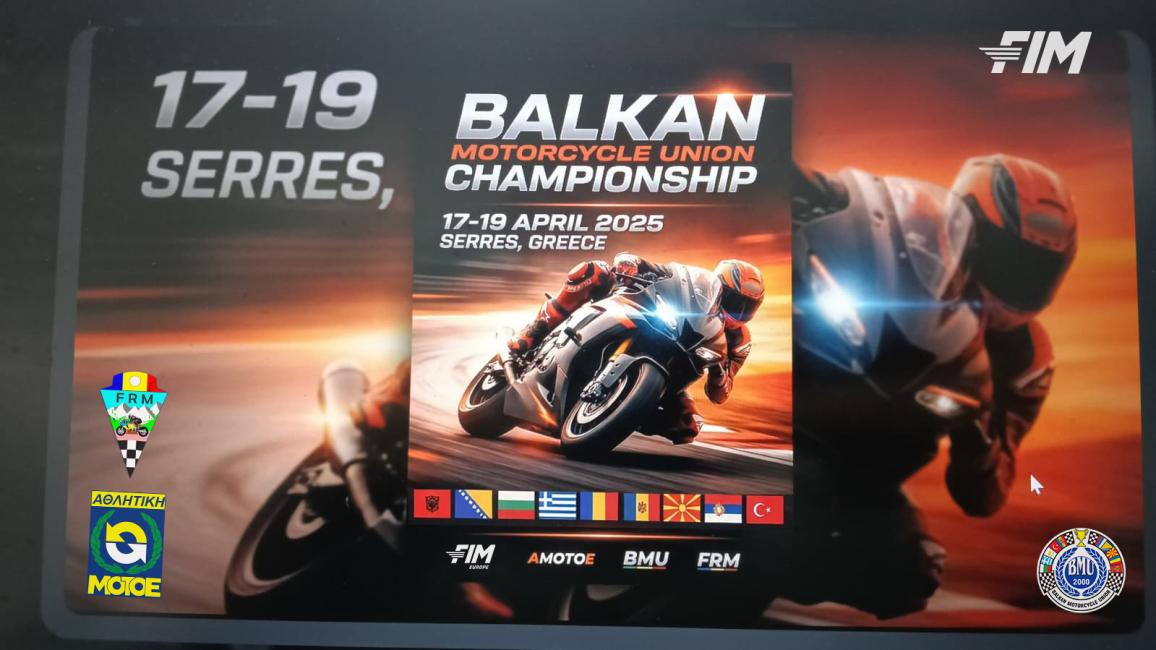 “Στα πλαίσια των 1ου και 2ου αγώνων του Βαλκανικού πρωταθλήματος, φιλοξενούνται και οι 1ος & 2ος αγώνες, για το Π.Π Ταχύτητας Μοτοσυκλετών στις 17-18-19 Απριλίου 2026 στο Αυτοκινητοδρόμιο των Σερρών.