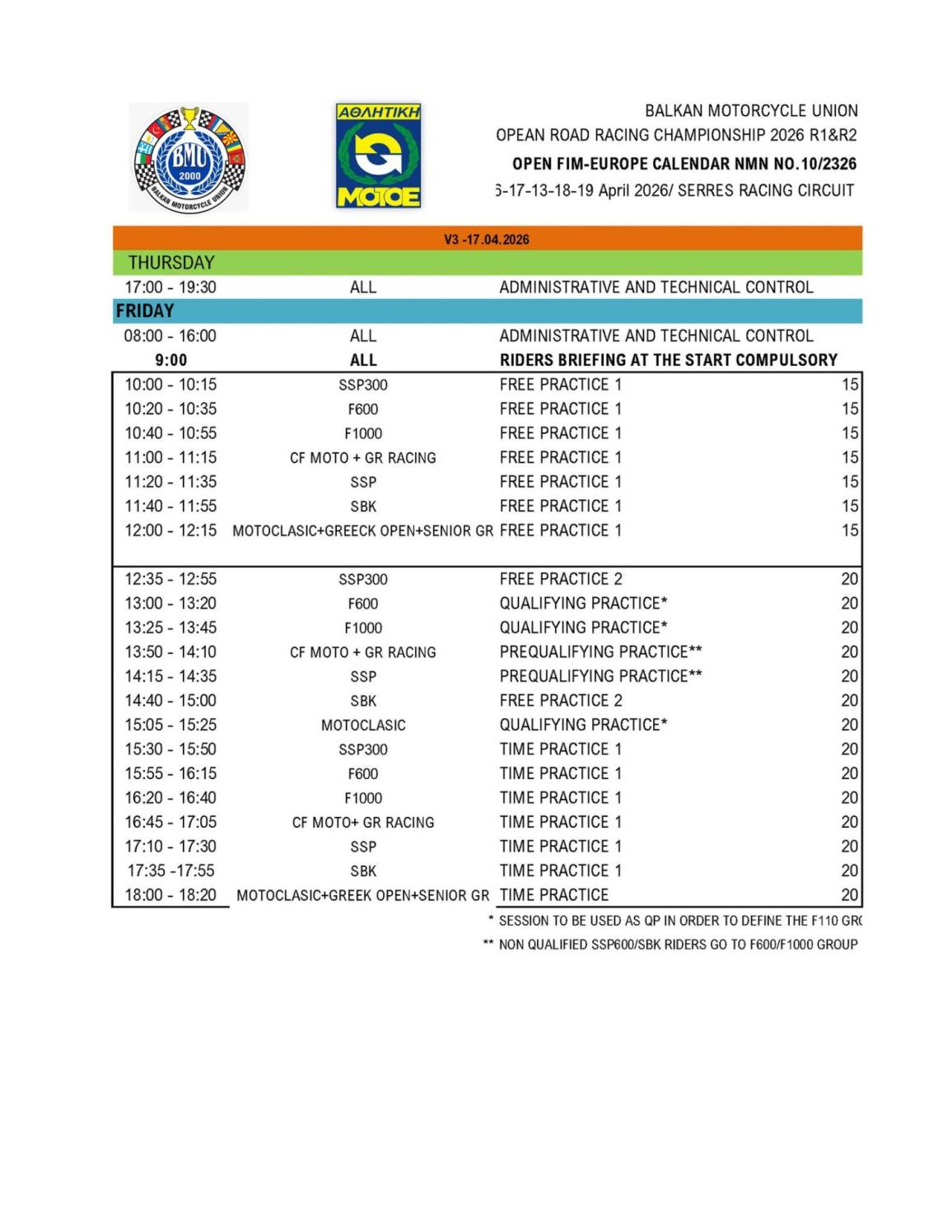 "Η διοργάνωση είναι της BMU και οι Έλληνες αθλητές που θα συμμετάσχουν στις κατηγορίες που είναι κοινές, θα βαθμολογηθούν ΚΑΙ στο Πανελλήνιο Πρωτάθλημα αγώνων ταχύτητας μοτοσυκλέτας της ΑΜΟΤΟΕ για το 2026.