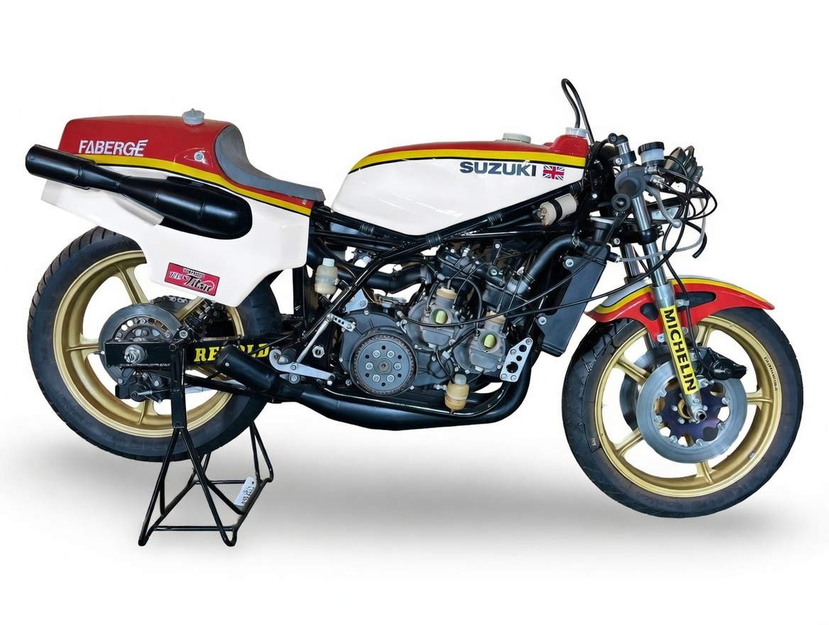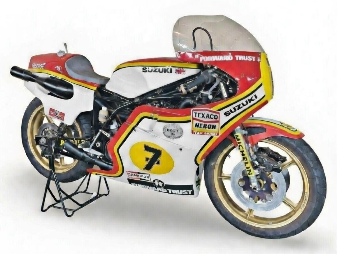 Η μοτοσυκλέτα του τίτλου του Sheene ήταν σχεδόν άφαντη όσον αφορά στην αγορά συλλεκτικών μοντέλων για σχεδόν 40 χρόνια, καθώς βρίσκεται στην ιδιοκτησία του τρέχοντος συλλέκτη από το 1987. Η μοτοσυκλέτα δίδεται σε “as last raced” κατάσταση, που σημαίνει πως χρήζει ριζικής αναπαλαίωσης αν ο νέος της ιδιοκτήτης θελήσει να τη δει να βγάζει και πάλι λευκό καπνό από τα 4 τελικά της.