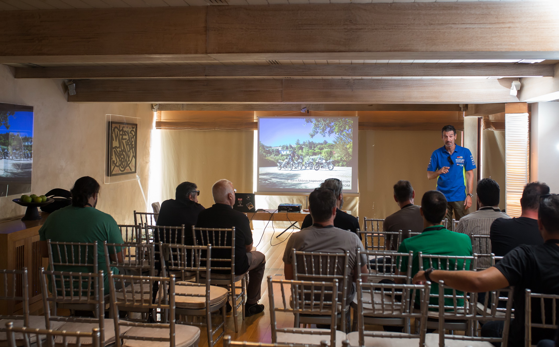 Σύσσωμο το staff της SUZUKI στην Ελλάδα βρισκόταν στην παρουσίαση: Ο Βαγγέλης Καλογηράτος - Δ/ντης Κλάδου Μοτοσικλετών, ο Λεωνίδας Πολίτης - Προϊστάμενος Πωλήσεων & Ανάπτυξης Δικτύου Μοτοσικλετών, η Μαργαρίτα Μαρινάκη - Motorcycle Marketing & Communication Manager, ο Δημήτρης Μαρινάκης - Υπεύθυνος Τεχνικής Υποστήριξης & Εξυπηρέτησης Πελατών Μοτοσικλετών, ο Χάρης Σκυριανός - Motorcycle Zone Manager, Κωνσταντίνος Τσόντζος - Motorcycle Product Manager και η Αναστασία Σούλη - Suzuki Moto Parts & Accessories District Manager & Yoshimura Product Manager.