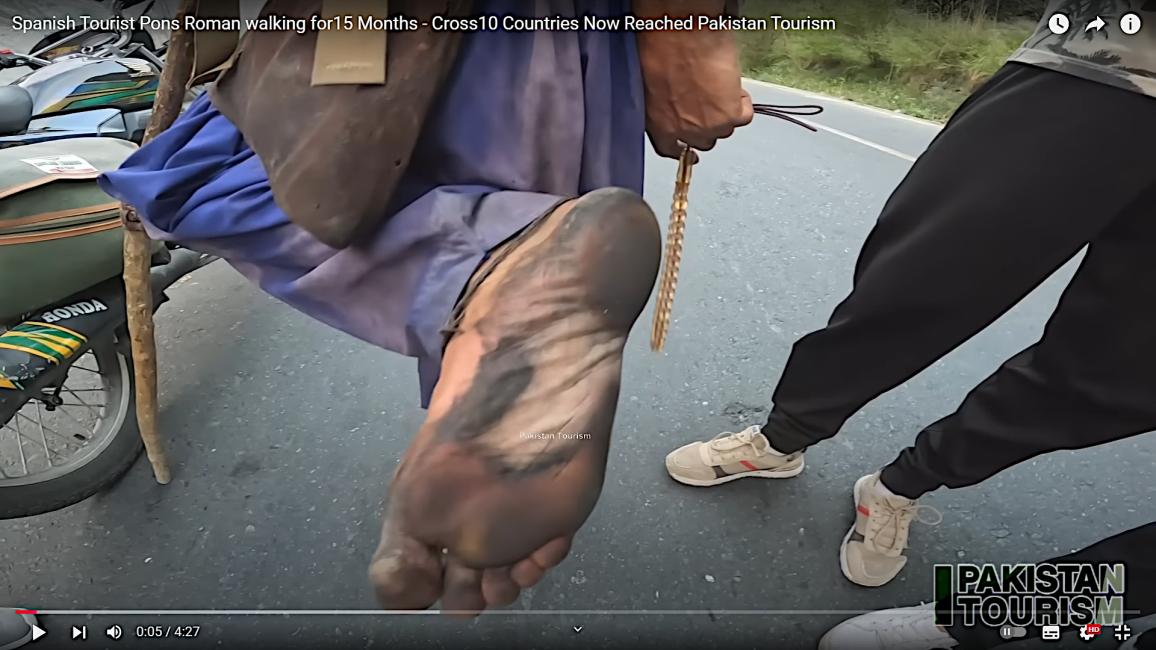 Όπως λέει ο ίδιος στο βίντεο, του πήρε 15 μήνες να περπατήσει από την Ισπανία στο Πακιστάν, διασχίζοντας 10 χώρες ξυπόλητος μέχρι να τα καταφέρει.