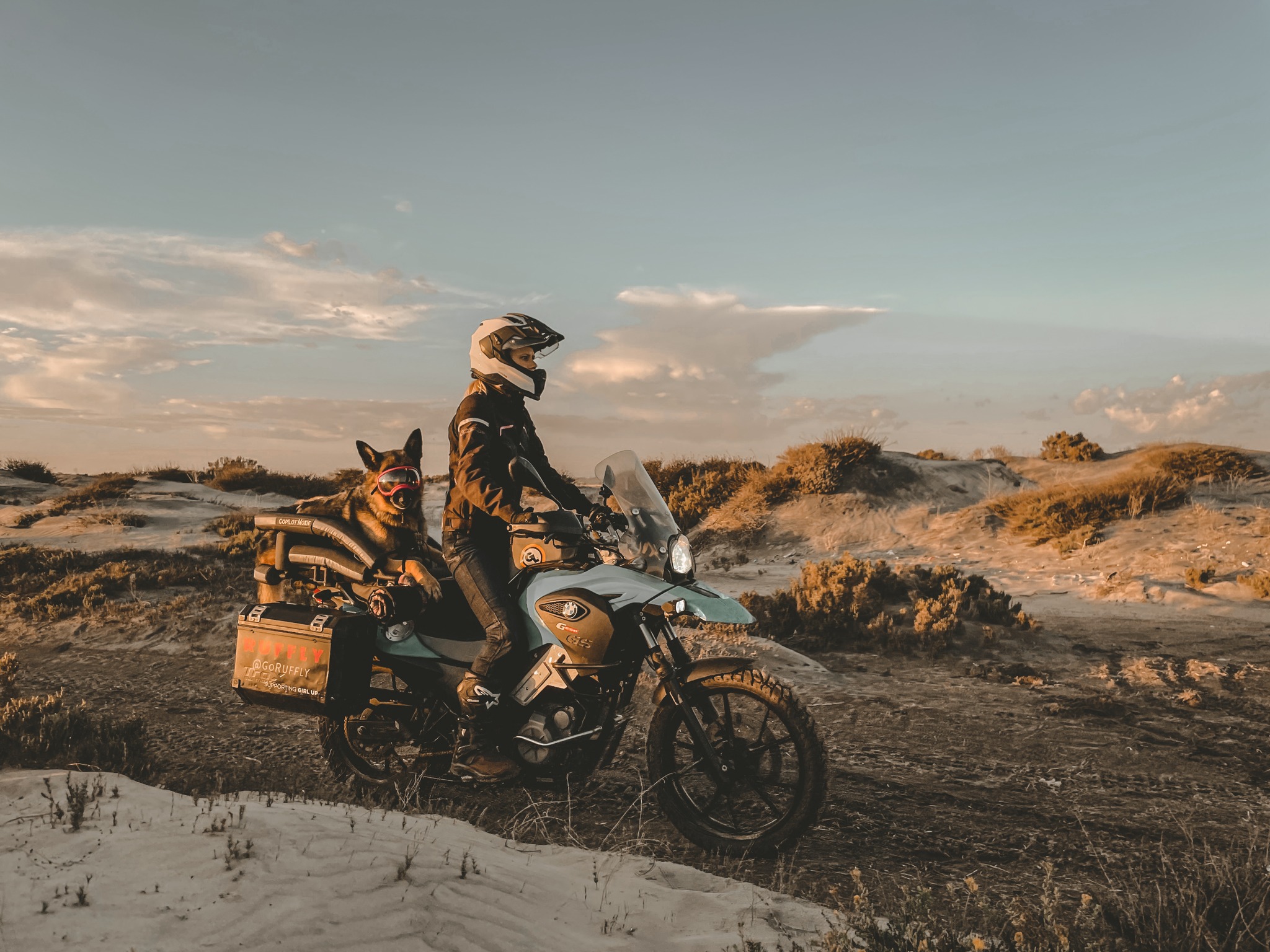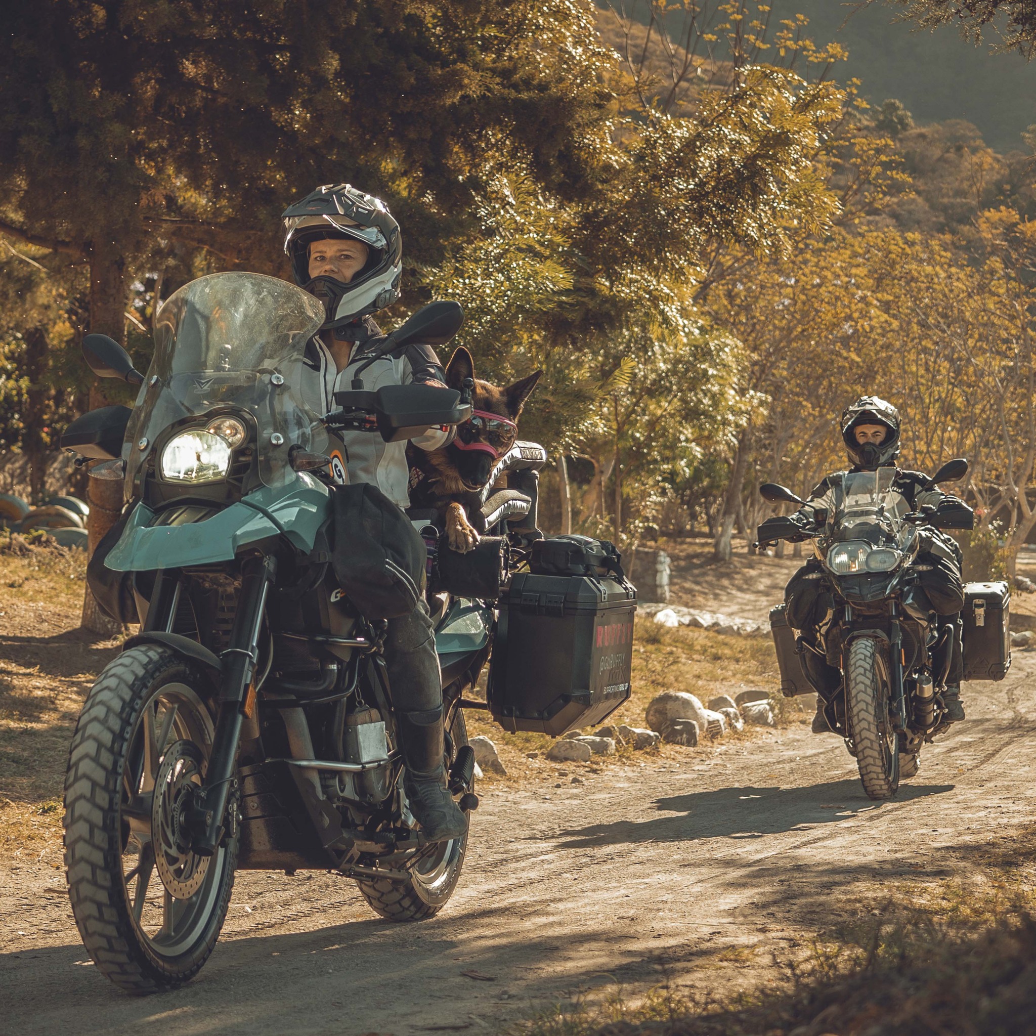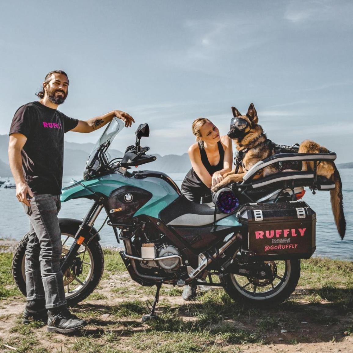 Στη ενότητα About του GoRuffly, μαθαίνουμε πως Jess και Stone γνωρίστηκαν στην Αφρική όπου εργαζόταν κι οι δυο σε μη κυβερνητικές οργανώσεις ενάντια στη φτώχεια και τον πόλεμο. Λίγα χρόνια αργότερα έκαναν ένα ταξίδι (με τις μοτοσυκλέτες τους) στη Γουατεμάλα, για να υποστηρίξουν ένα μη κερδοσκοπικό project μικροχρηματοδότησης για γυναίκες επιχειρηματίες. Εκεί υιοθέτησαν τη Moxie και ξεκίνησαν να σχεδιάζουν αξεσουάρ για σκύλους τα οποία κατασκεύαζαν ντόπιοι τεχνίτες, με αποκορύφωμα το K9 Moto Cockpit, ένα καλάθι σκύλου το οποίο προσαρμόζεται στη σέλα της μοτοσυκλέτας! Το K9 Moto Cockpit πωλείται στο εξαιρετικά καλοσχεδιασμένο e-shop της σελίδας του ζεύγους, με την τιμή του να ξεκινά από τα… 1.750 δολάρια! Κι αν έχετε μικρότερο σκυλάκι, έχουμε και το Nano Cockpit για εσάς, που ξεκινά από τα 850 δολάρια. Και λουριά έχουμε, και παιχνίδια, και σπιτάκια, και κουβέρτες, και τσάντες, κ.α., με το ζεύγος να ονομάζει τα προϊόντα τους “Ethical Outdoor Dog Gear ”.