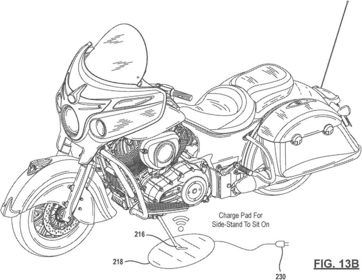 Επιπρόσθετα στο ίδιο έγγραφο ευρεσιτεχνίας υπάρχει μία εικόνα η οποία δείχνει μία μοτοσυκλέτα της Indian σταθμευμένη με το πλάγιο σταντ να ακουμπά σε έναν ασύρματο επαγωγικό σταθμό φόρτισης ο οποίος εκτελεί χρέη συντηρητή για την μπαταρία. Με αυτόν τον τρόπο σύμφωνα με την Indian θα λυθεί το πρόβλημα που αντιμετωπίζουν αρκετοί μοτοσυκλετιστές, όταν μία ωραία πρωία ξαφνικά διαπιστώνουν πως η μοτοσυκλέτα τους έχει μείνει από μπαταρία. Η πατέντα της Indian έχει όντως ενδιαφέρον ωστόσο δεν γνωρίζουμε ούτε πόσο σύντομα θα τη δούμε να περνά στην παραγωγή, ούτε πόσο αποδοτική θα είναι σε κακές καιρικές συνθήκες με βροχή και χιόνι. Τέλος να αναφέρουμε πως σήμερα η ασύρματη φόρτιση έχει ακόμα πολλές προκλήσεις και εμπόδια να αντιμετωπίσει ώστε να είναι κάποια στιγμή απόλυτα ασφαλής και αποδοτική.