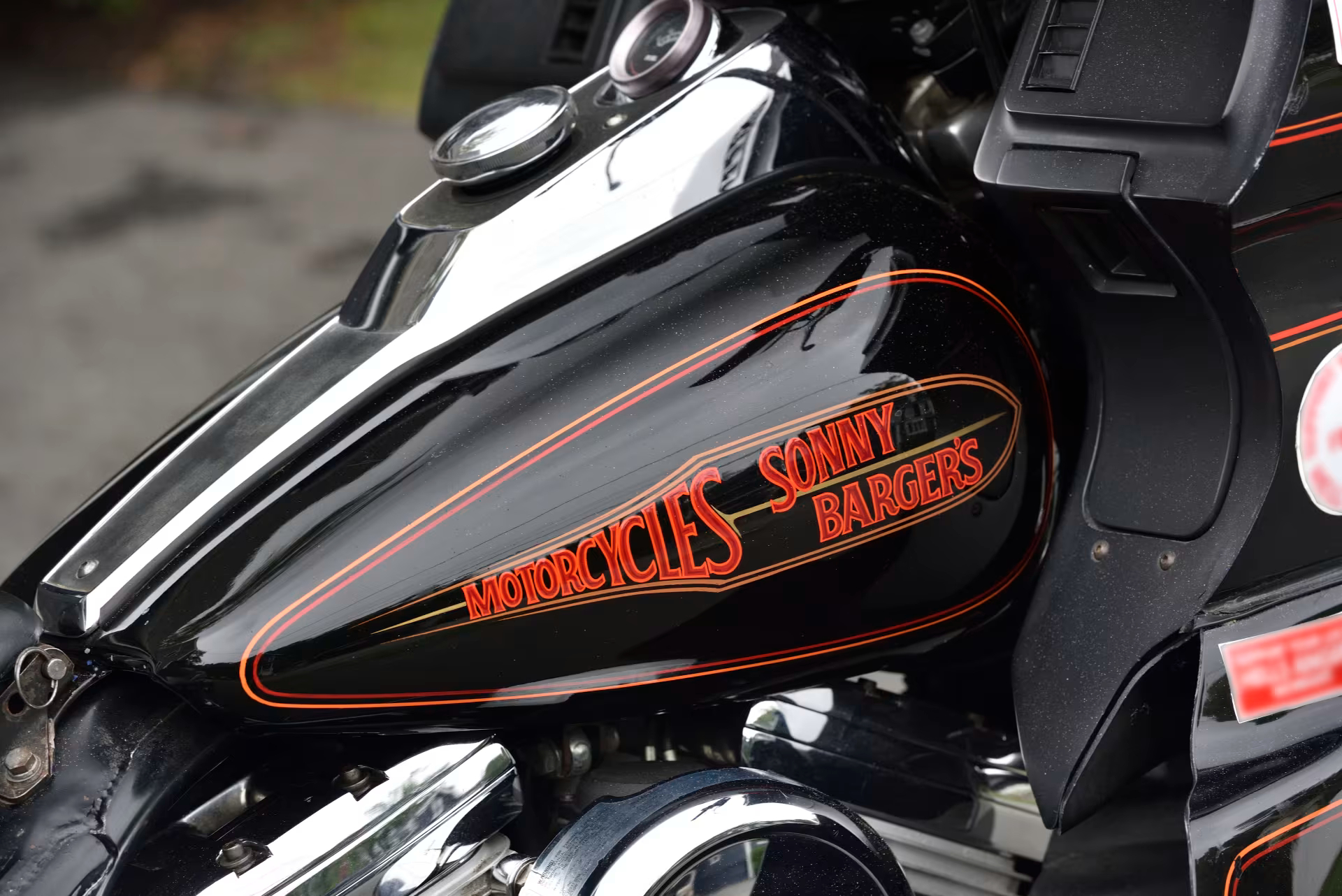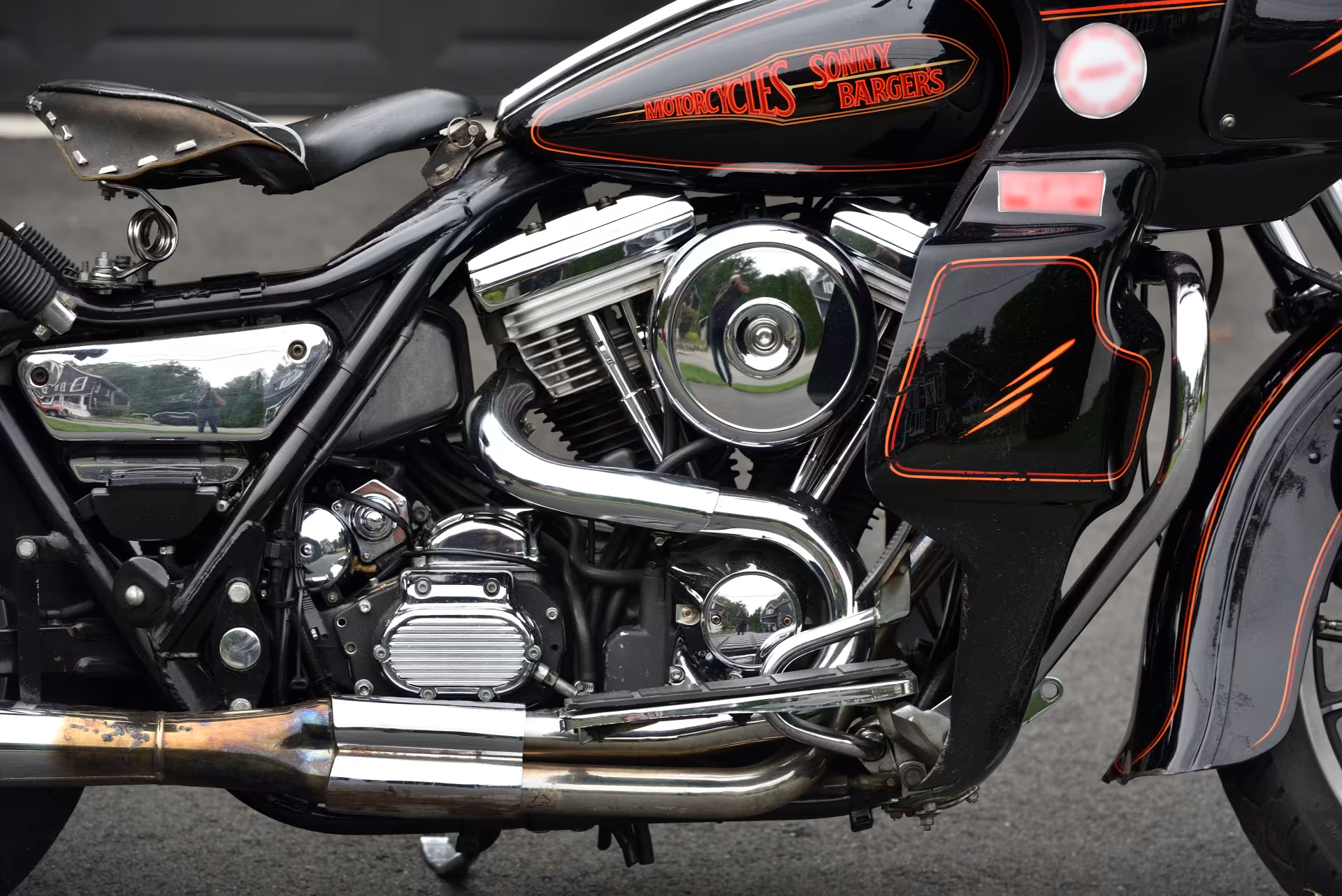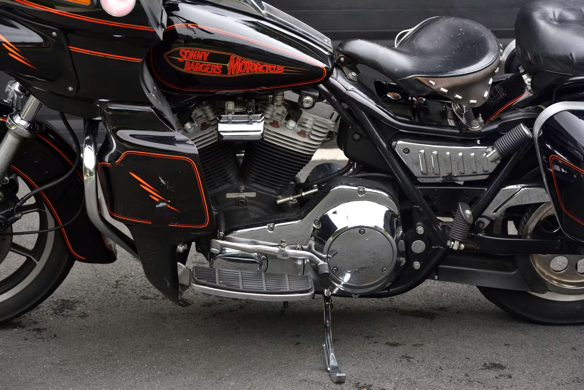 Η μοτοσυκλέτα με το μεγάλο φαίρινγκ και τα ευμεγέθη φωτιστικά σώματα κοσμεί το εξώφυλλο της βιογραφίας του Barger, “The Life and Times of Ralph ‘Sonny’ Barger Jr.” και παρά τα 33.638 μίλια στο κοντέρ, η κατάστασή της παραμένει εξαιρετική, σε πλήρως λειτουργική κατάσταση, διατηρώντας τις προσωπικές παρεμβάσεις του ιδιοκτήτη της, με την χαρακτηριστική μαύρη custom βαφή με κόκκινο-πορτοκαλί λεπτομέρειες και το όνομα του Sonny Barger γραμμένο στις δύο πλευρές του ρεζερβουάρ. Ξεχωριστή είναι και η σέλα αναβάτη με ελατήρια και η συνοδηγού με πλάτη. Τον εξοπλισμό της συμπληρώνει ένα ζεύγος σκληρές βαλίτσες στον ίδιο χρωματικό συνδυασμό.