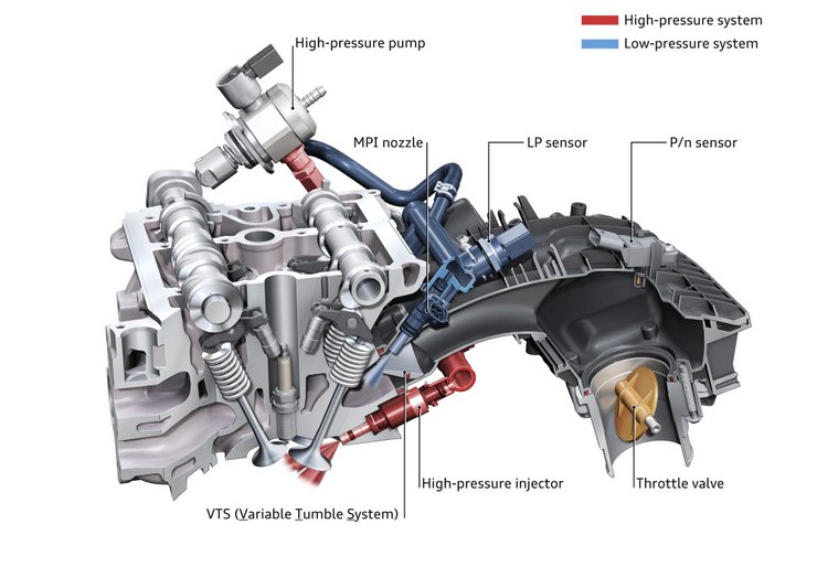 Το κάθε σύστημα έχει τα πλεονεκτήματά του και αυτό προσπαθεί να συνδυάσει η Kawasaki. Ο συμβατικόςψεκασμός, όπου τα μπεκ ψεκάζουν το καύσιμο στον αυλό εισαγωγής έχει τη δυνατότητα να ψύχει τον εισερχόμενο αέρα με αποτέλεσμα να αυξάνεται η πυκνότητά του και να εισάγεται περισσότερο οξυγόνο στο θάλαμο καύσης, και κατά συνέπεια να είναι αποδοτικότερη η καύση. Από την άλλη, το σύστημα άμεσου ψεκασμού, όπου τα μπεκ ψεκάζουν κατευθείαν μέσα στο θάλαμο καύσης έχει ως αποτέλεσμα να ψύχεται καλύτερα ο θάλαμος και να μην δημιουργείται η προανάφλεξη του μείγματος. Παράλληλα, η λειτουργία των tubro ή κινητήρων με υπερσυμπιεστή βελτιώνεται προσφέροντας περισσότερη δύναμη και χαμηλότερο ρίσκο εμφάνισης κάποιας βλάβης απ’ την προανάφλεξη.
