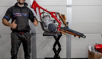 Για να μπει ο νέος κινητήρας στη θέση του, το πλαίσιο χρειάστηκε μετατροπές, ενώ custom είναι και το ψαλίδι (ψαλίδι ο Θεός να το κάνει... δείχνει να προέρχεται από KTM με τον Sib να έχει αφήσει πάνω μόνο τα "νεύρα", και να μας κάνει να αναρωτιόμαστε αν το κομψοτέχνημα αυτό θα σπάσει... στο ρελαντί!), η έδραση του αμορτισέρ πίσω, η εξάτμιση, κ.α.