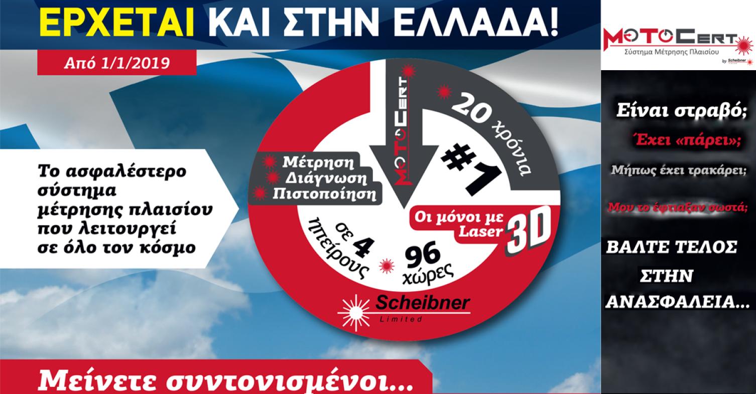 Τα νέα είναι θαυμάσια, μία εταιρία με τεράστια εμπειρία και τεχνογνωσία που είναι μοναδική στον τομέα της μέτρησης πλαισίων, έρχεται στην Ελλάδα! Πιστοποιημένη μέτρηση αλλά και διάγνωση, όλα σε ένα! Για όποιον αγοράζει μεταχειρισμένο, όποιον θέλει να γνωρίζει ακριβώς τι έχει γίνει στην μοτοσυκλέτα του μετά από πτώση ή τρακάρισμα, όποιος θέλει να επαληθεύσει την πορεία κάποιας εργασίας, όχι στο «περίπου» ή βάση γνώμης αλλά με πραγματική μέτρηση ακριβείας, αρχίζει να διαφαίνεται λύση, να πέφτει φως και μάλιστα μπόλικο. Έρχεται στην Ελλάδα και μάλιστα άμεσα, η καλύτερη εταιρία στο είδος της: Με περισσότερα από είκοσι χρόνια εμπειρίας και εξάπλωση σε 96 χώρες και 4 ηπείρους, η MOTOCert φέρνει την τεχνολογία της Scheibner στην υπηρεσία μας!