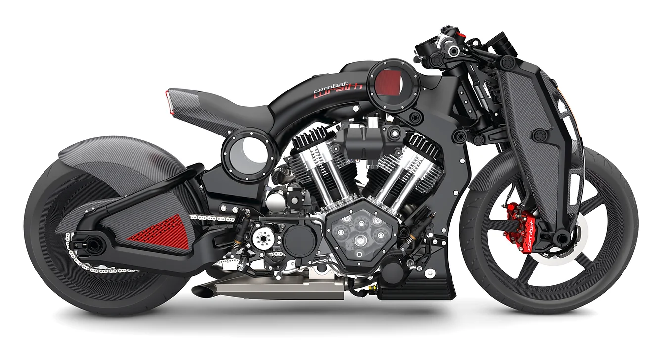 Το Wraith εξελίσσει τη φόρμουλα των ακραίων και ιδιαίτερων αισθητικά μοτοσυκλετών της πρώην Confederate, υπό την αιγίδα της νέας αμερικάνικης εταιρείας Combat. Όπως και με τον προκάτοχο P-51 Combat Fighter, το Wraith κατασκευάζεται από billet κομμάτια αλουμινίου, χαρίζοντας του μοναδική εμφάνιση. Στην καρδιά της μοτοσυκλέτας χτυπά ένας κτηνώδης αερόψυκτος V2 κινητήρας 2.163 κ.εκ. της S&S με 111 hp και 20 kgm ροπής. Το πλαίσιο είναι αλουμινένιο μονοκόκ, περιέχοντας και το ρεζερβουάρ, με την Combat να κάνει λόγο για τελική ταχύτητα που ξεπερνά τα 260 χλμ/ώρα. Μοναδικό είναι και το εναλλακτικό σύστημα διεύθυνσης μπροστά, με carbon τροχούς 19 ιντσών μπροστά και 17 πίσω, μεταξόνιο 1.587 mm και βάρος με υγρά στα 254 kg. Ένα πραγματικά μοναδικής αισθητικής αμερικάνικο power-cruiser που δεν θυμίζει τίποτα άλλο.
