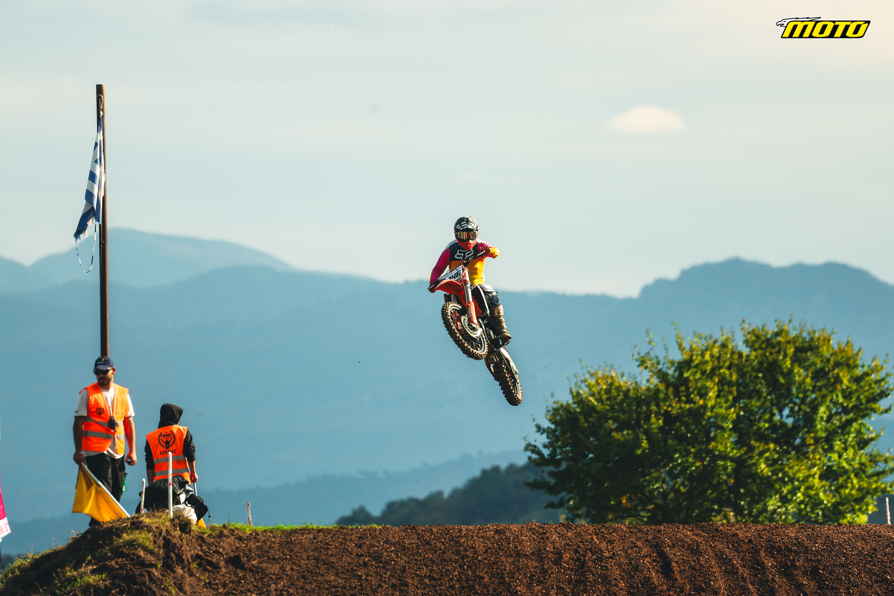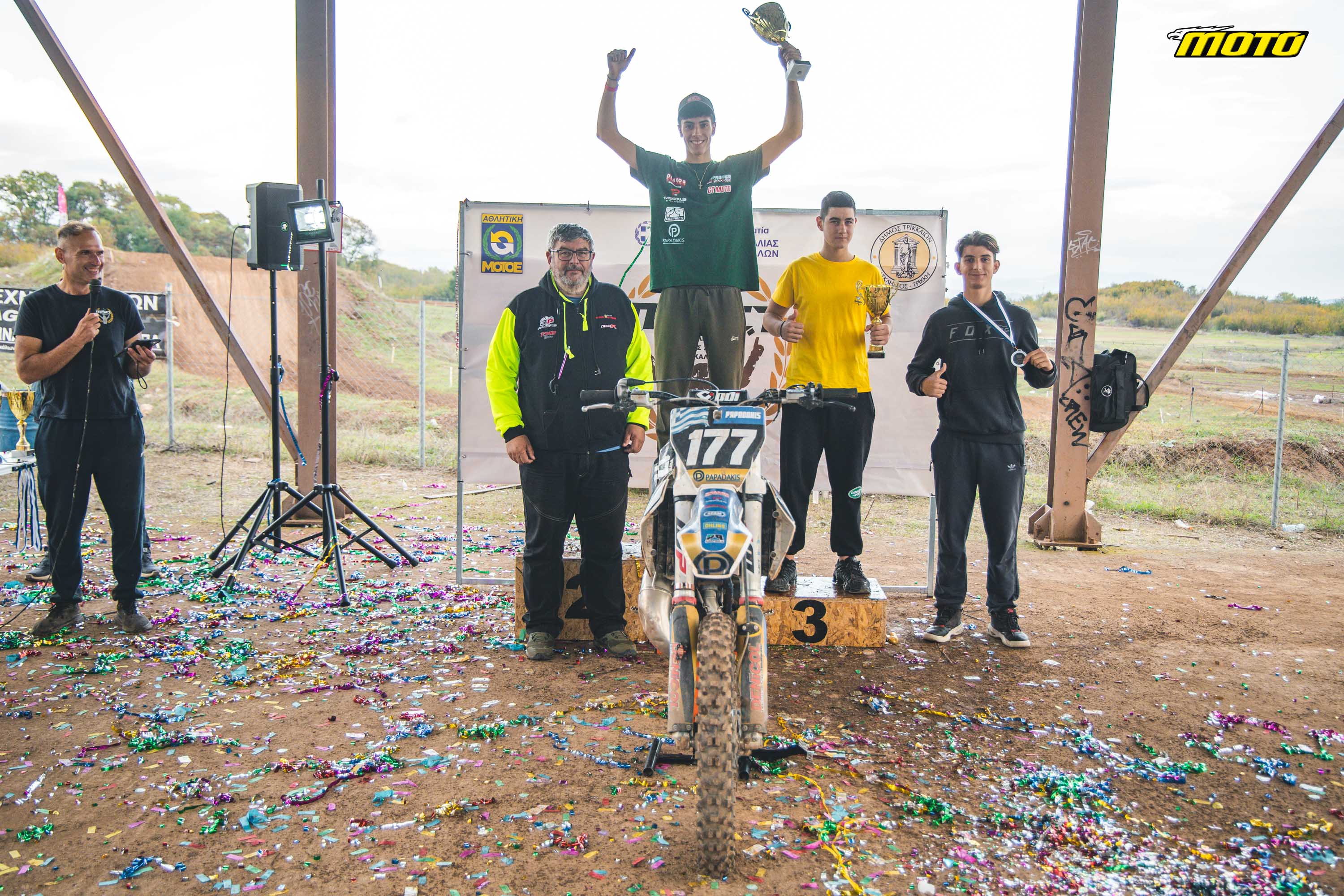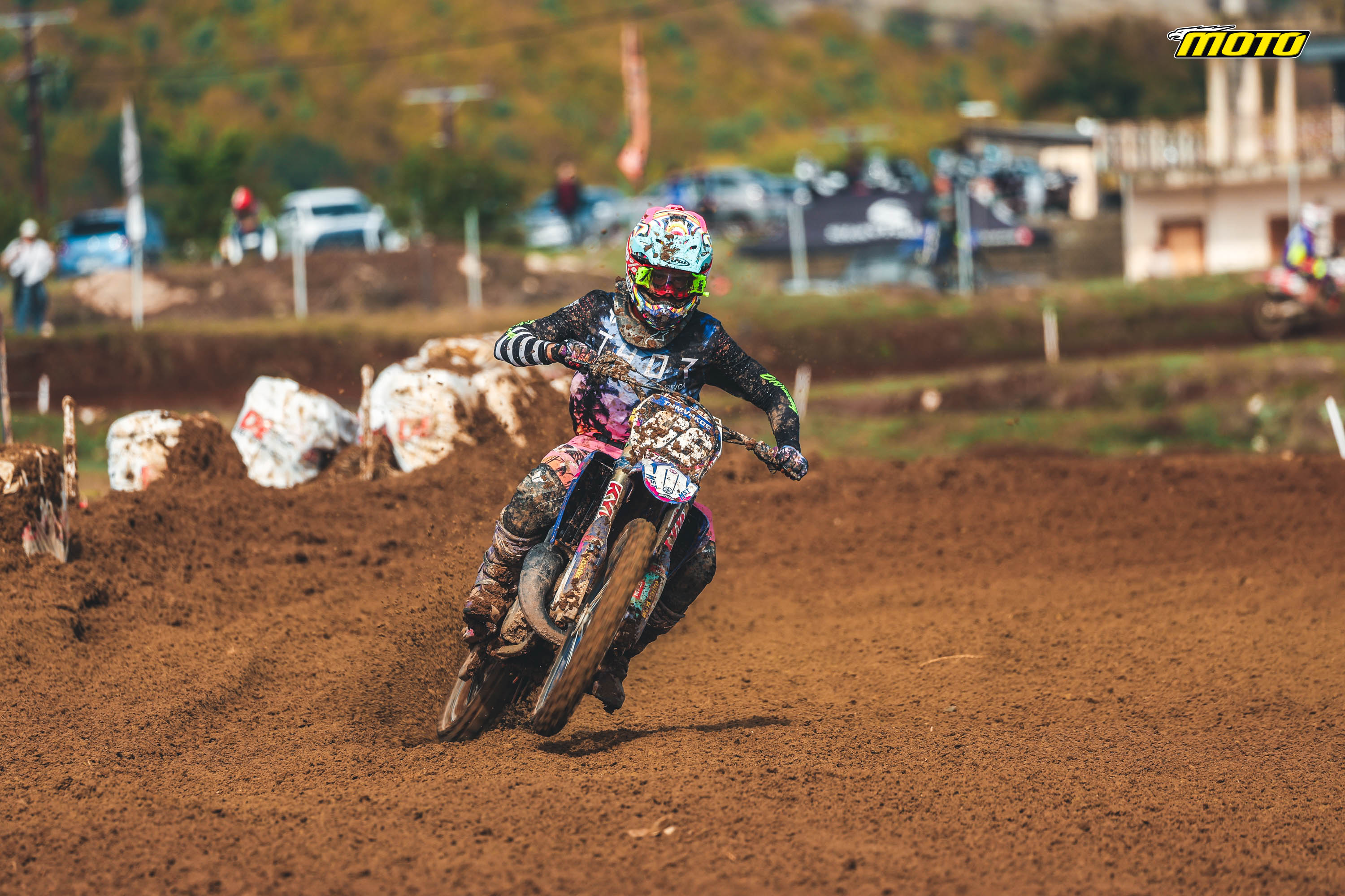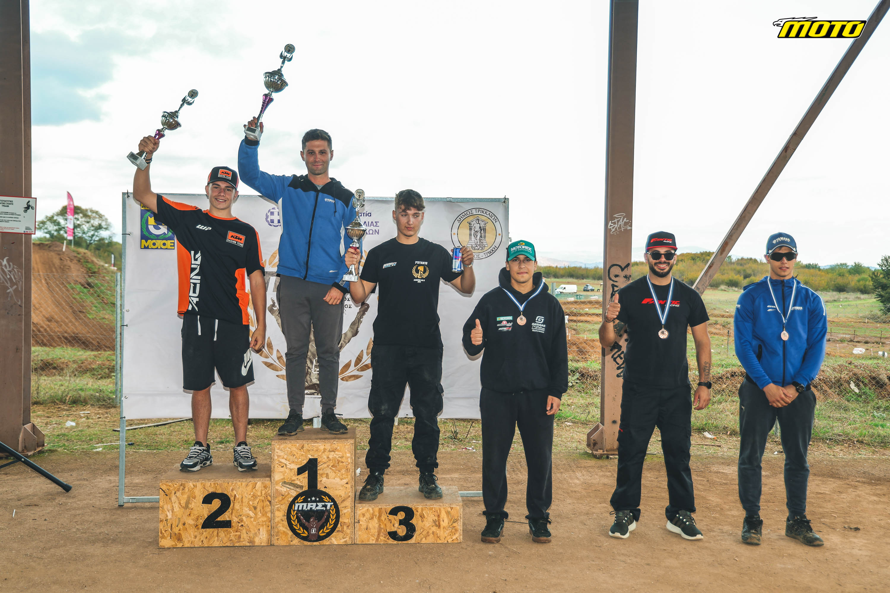 MX1: Ο Πρωταθλητής ΓΙΑΝΝΗΣ ΤΟΥΡΑΤΖΙΔΗΣ (100) – κάνει τον ταχύτερο χρόνο του αγώνα, με δυναμική οδήγηση ανεβαίνοντας στην 3η θέση του βάθρου.
