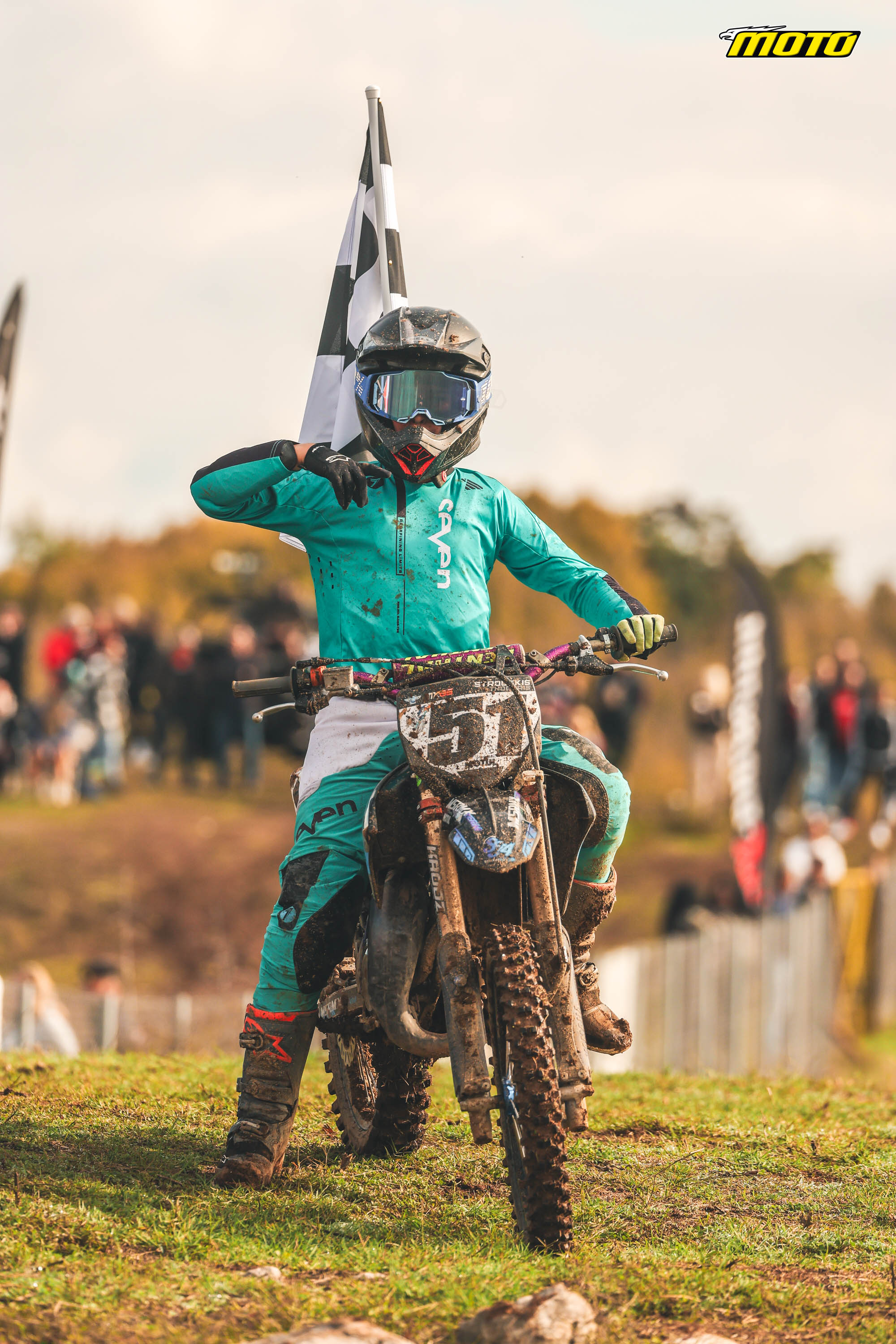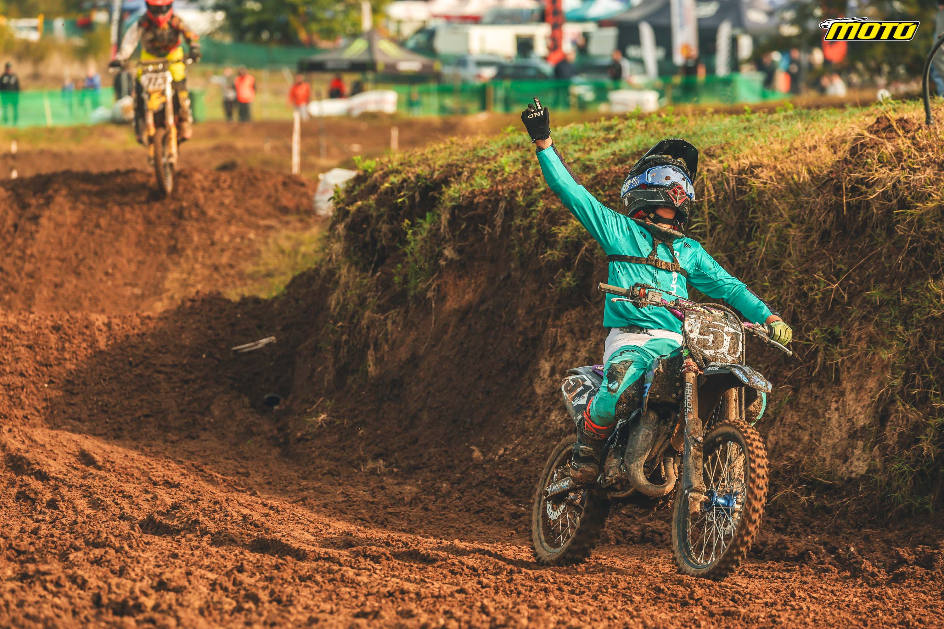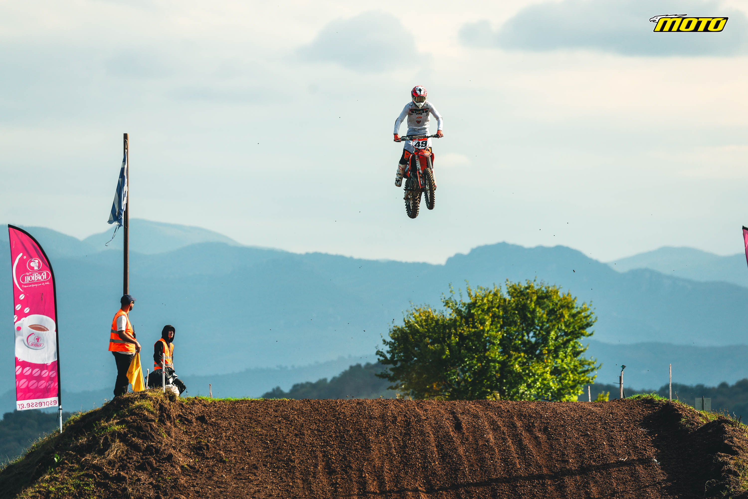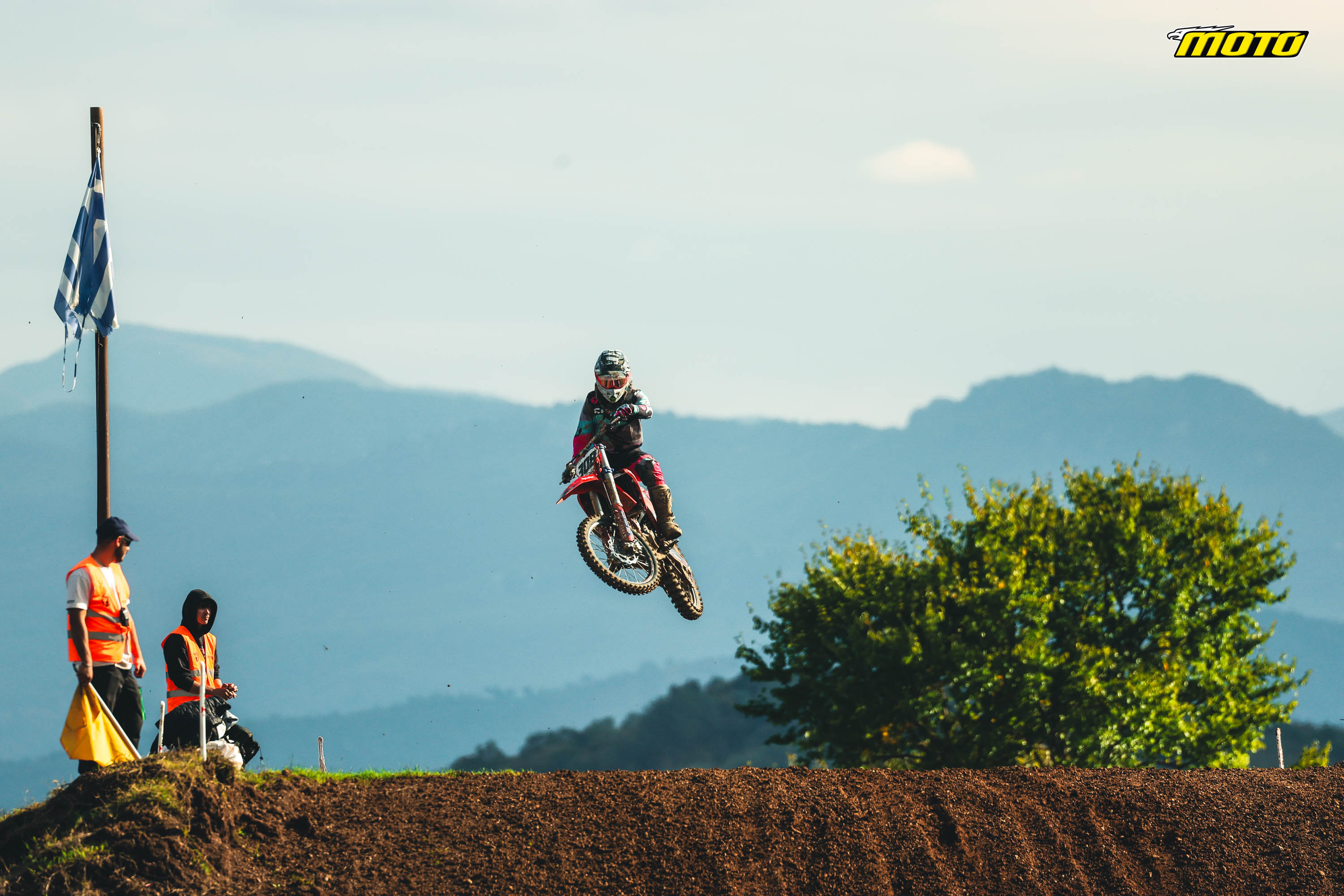 MX1: Ο Πρωταθλητής ΓΙΑΝΝΗΣ ΤΟΥΡΑΤΖΙΔΗΣ (100) – κάνει τον ταχύτερο χρόνο του αγώνα, με δυναμική οδήγηση ανεβαίνοντας στην 3η θέση του βάθρου.