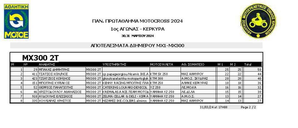 Ο πρώτος αγώνας της χρονιάς για το Πανελλήνιο Πρωτάθλημα Motocross ολοκληρώθηκε, με τους αγωνιζόμενους όλων των κατηγοριών να φεύγουν από το νησί της Κέρκυρας με μία γλυκόπικρη γεύση καθώς εχθές υπήρξαν πολλά παράπονα ενώ σήμερα η εικόνα ήταν καλύτερη παρόλο που οι εντάσεις, κυρίως το πρωί, δεν αποφεύφθηκαν πλήρως.