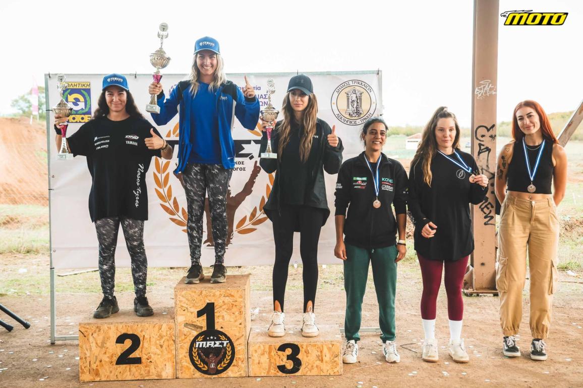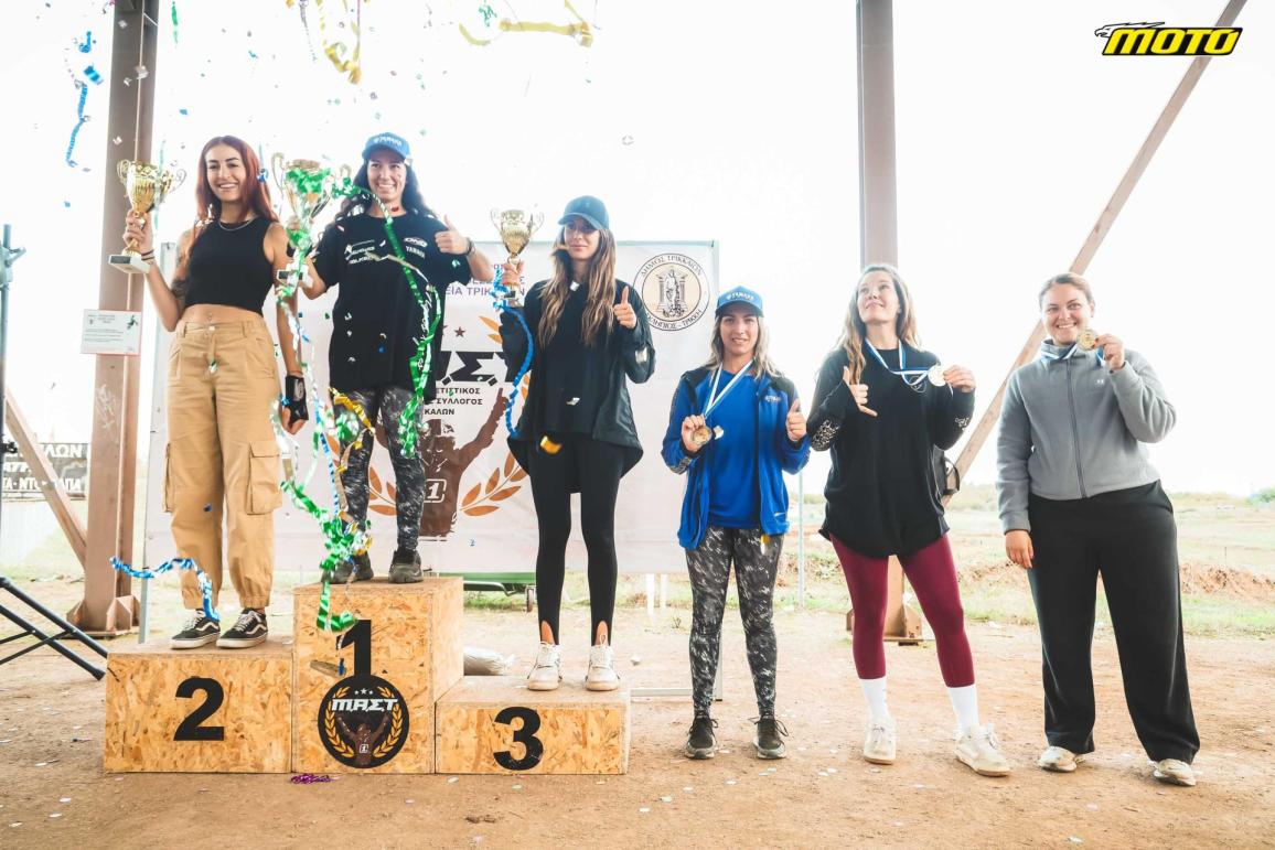 Η Ιωάννα Λάμπρου έκλεισε ιδανικά τη σεζόν με ακόμη δύο καθαρές νίκες, επιβεβαιώνοντας την ανωτερότητά της. Δεύτερη τερμάτισε η Αμαλία Λάμπρου #17 (Yamaha YZ 125) και τρίτη η Δέσποινα Πασαλή #9 (KTM SXF 250). Η Άννα Αραμπατζή #960 (Kove 250) και η Ελένη Λυμπεροπούλου #213 (KTM SX 125) ολοκλήρωσαν τις πέντε πρώτες σε ένα όμορφο, χωρίς απρόοπτα, γυναικείο σκέλος.