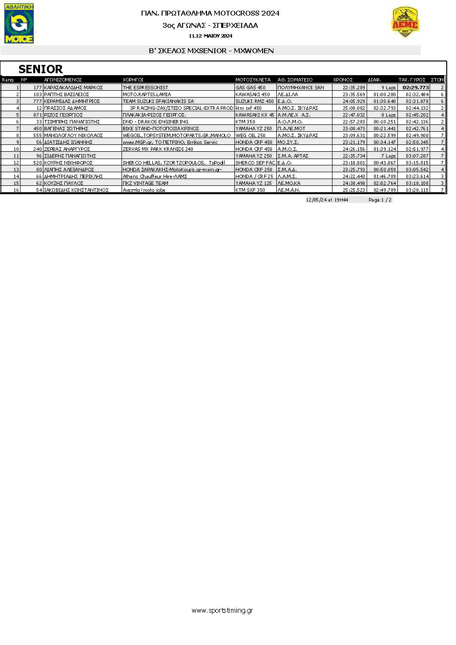 Κλασική αξία και άπιαστος ο Καρασακαλίδης (#177 GASGAS) που κέρδισε τα δύο σκέλη της MXSENIOR με τον Ζερβα (#240 Honda) και τον Ράπτη (#103 Kawasaki) να κλείνουν την τριάδα στο πρώτο και έπειτα τον Ράπτη να ανεβαίνει στην δεύτερη θέση με την τρίτη να πηγαίνει στον συντάκτη MX του MOTO, τον Δημήτρη Κεραμιδά (#777 Suzuki) που ανέκαμψε και πήρε την θέση του στο βάθρο.