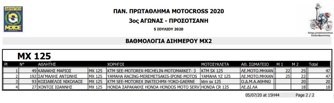 Στην MX2T, ο Μάριος Κανάκης επικράτησε του Σάγμαλη , ο οποίος έμεινε για λίγο εκτός βάθρου στην ΜΧ2 οδηγώντας μια μοτοσυκλέτα 125 κυβικών.
