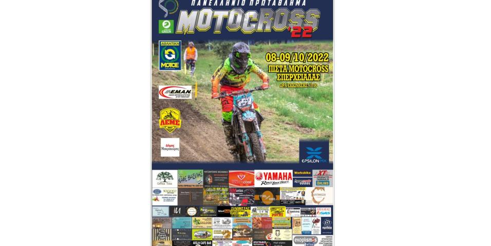 Motocross 3/10/2022 6ος αγώνας Πανελλήνιου Πρωταθλήματος ΜΧ - 8 και 9 Οκτωβρίου στη Σπερχειάδα Η Α.ΜΟΤ.Ο.Ε. ανακοινώνει πως ο 6ος αγώνας του φετινού Πανελληνίου Πρωταθλήματος MOTOCROSS θα πραγματοποιηθεί στην Σπερχειάδα, το Σαββατοκύριακο 8 και 9 Οκτωβρίου.Την ευθύνη διοργάνωσης του αγώνα έχει ...