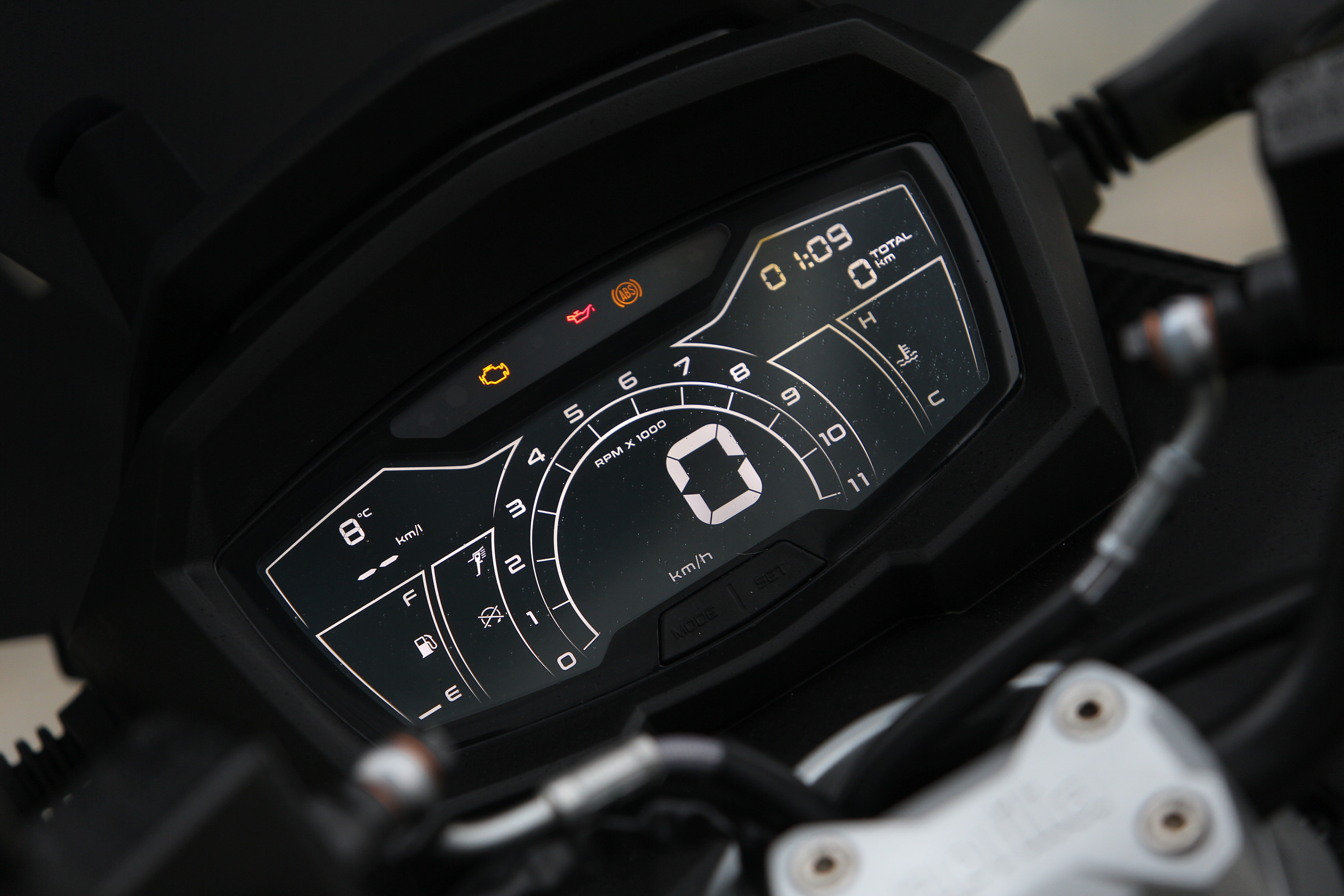 Ο εξοπλισμός της μοτοσυκλέτας περιλαμβάνει Traction Control με δυνατότητα απενεργοποίησης, καθρέπτες bar-end και ABS της Bosch.