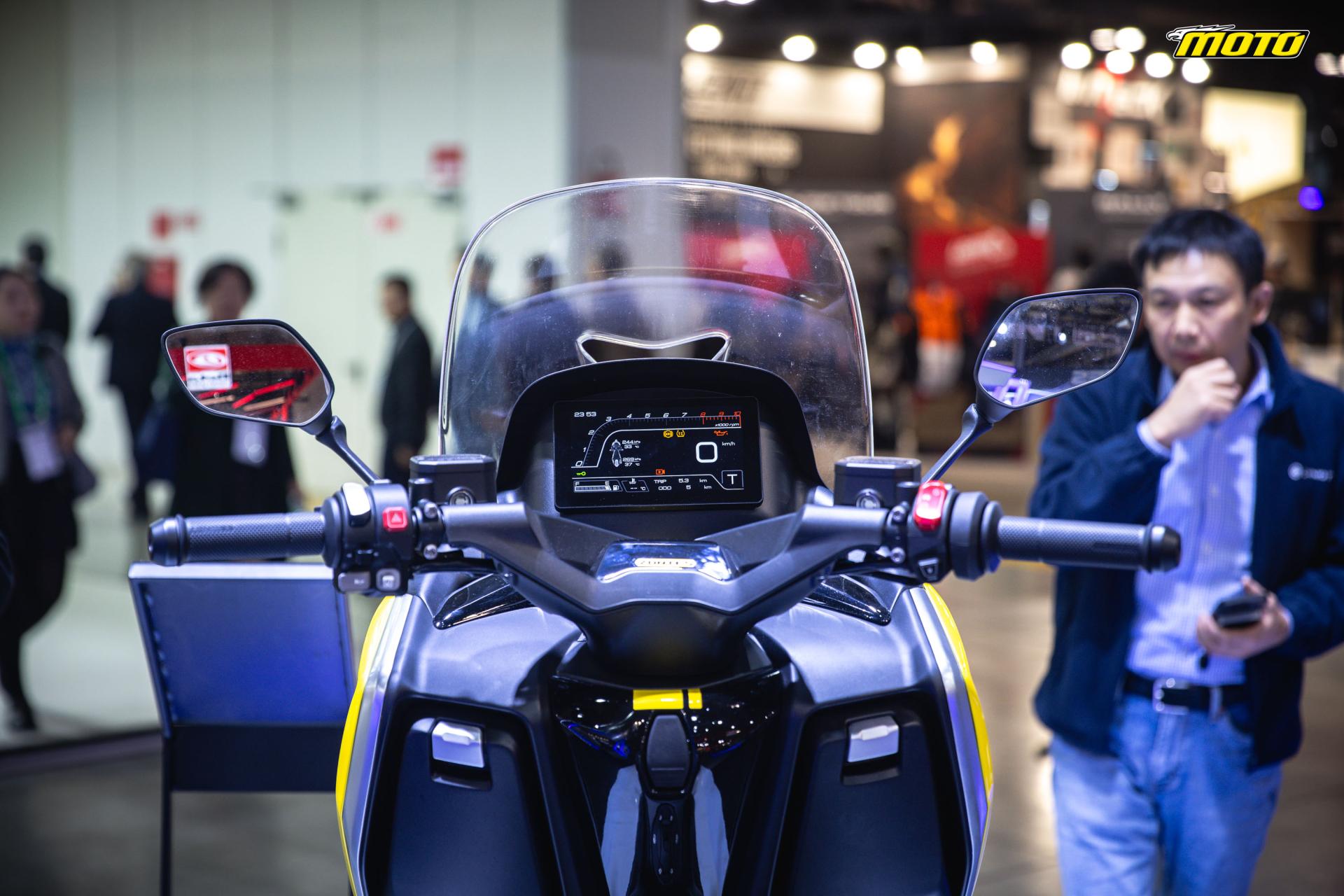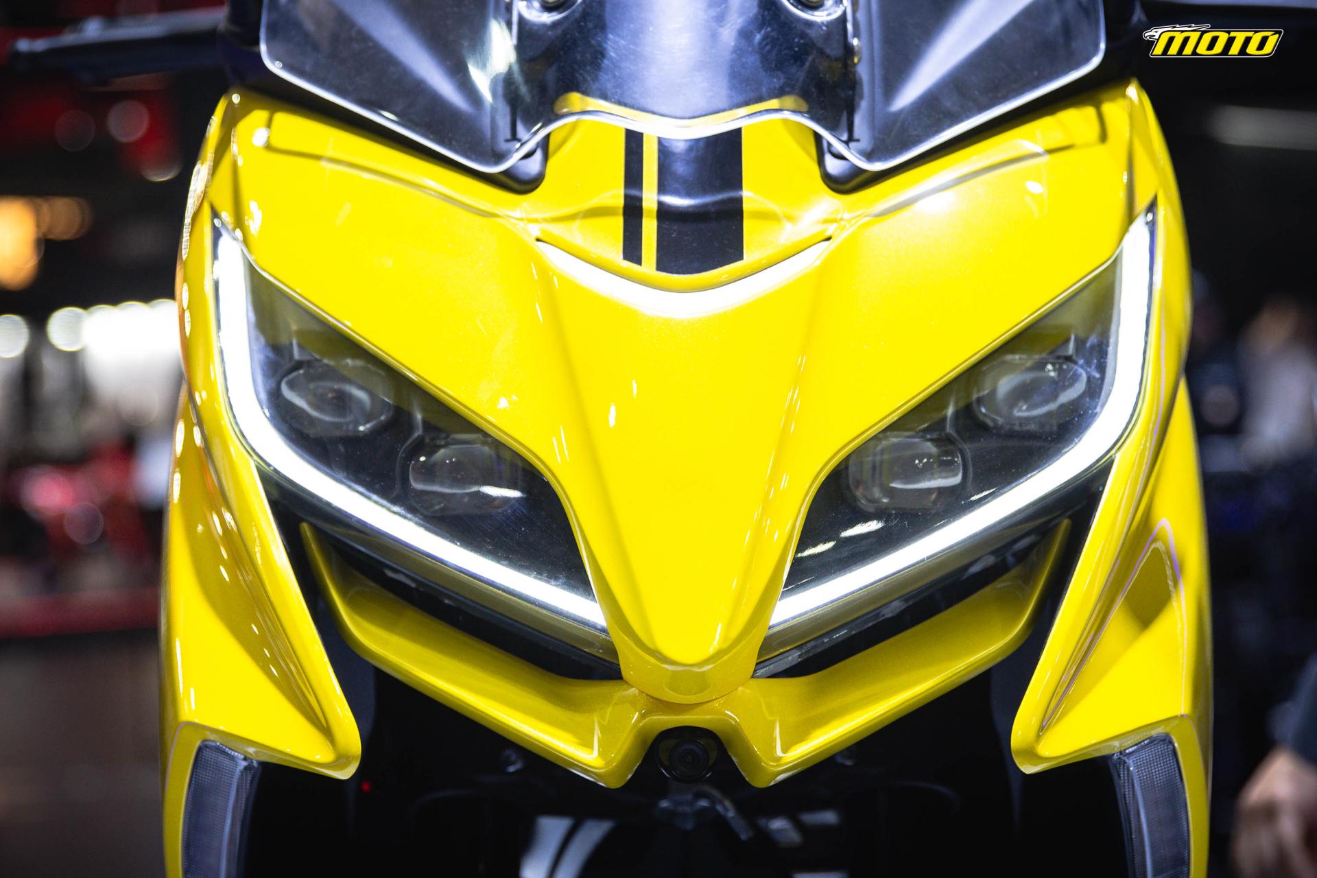 Στο μπροστινό φτερό αναγράφεται η διαδρομή της ανάρτησης, στην κορυφή της κατηγορίας της -240 mm- δίνοντας έμφαση στις off-road δυνατότητες του Aprilia Tuareg.