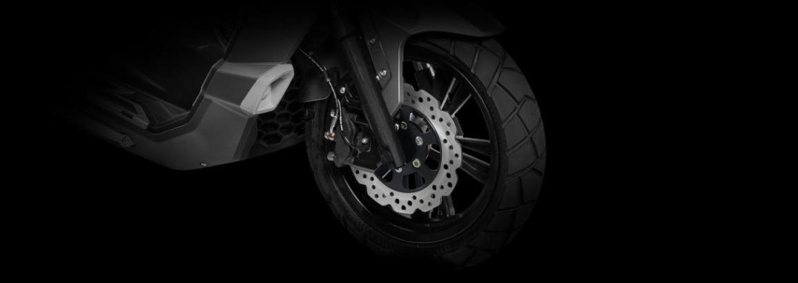 Μπροστά το συμβατικό τηλεσκοπικό πιρούνι 33 χιλιοστών δίνει διαδρομή 90 χιλιοστών, ενώ πίσω βρίσκουμε δύο αμορτισέρ ρυθμιζόμενα ως προς την προφόρτιση των ελατηρίων. Την πέδηση αναλαμβάνουν δύο δίσκοι, ένας 240 χιλιοστών με ακτινικά τοποθετημένη δαγκάνα τριών εμβόλων της J.Juan μπροστά και ένας 220 χιλιοστών με δαγκάνα δύο εμβόλων της ίδιας εταιρείας. Το CBS, όπως επιτάσσει η ευρωπαϊκή νομοθεσία, ανήκει στον βασικό εξοπλισμό.