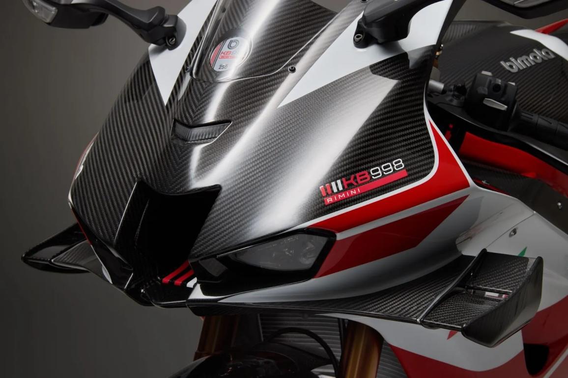 Η KB998 Rimini ξεχωρίζει από το υβριδικό πλαίσιο που αποτελείται από ένα ατσάλινο τμήμα μπροστά και από αλουμινένια τμήματα στο κάτω μέρος του, ενώ το αλουμινένιο ψαλίδι εδράζεται στον κινητήρα του ZX-10RR. Το φαίρινγκ είναι από carbon, ενώ η βαφή είναι στα πρότυπα της Bimota, με τα κλασικά χρώματα λευκό-κόκκινο και μαύρο.