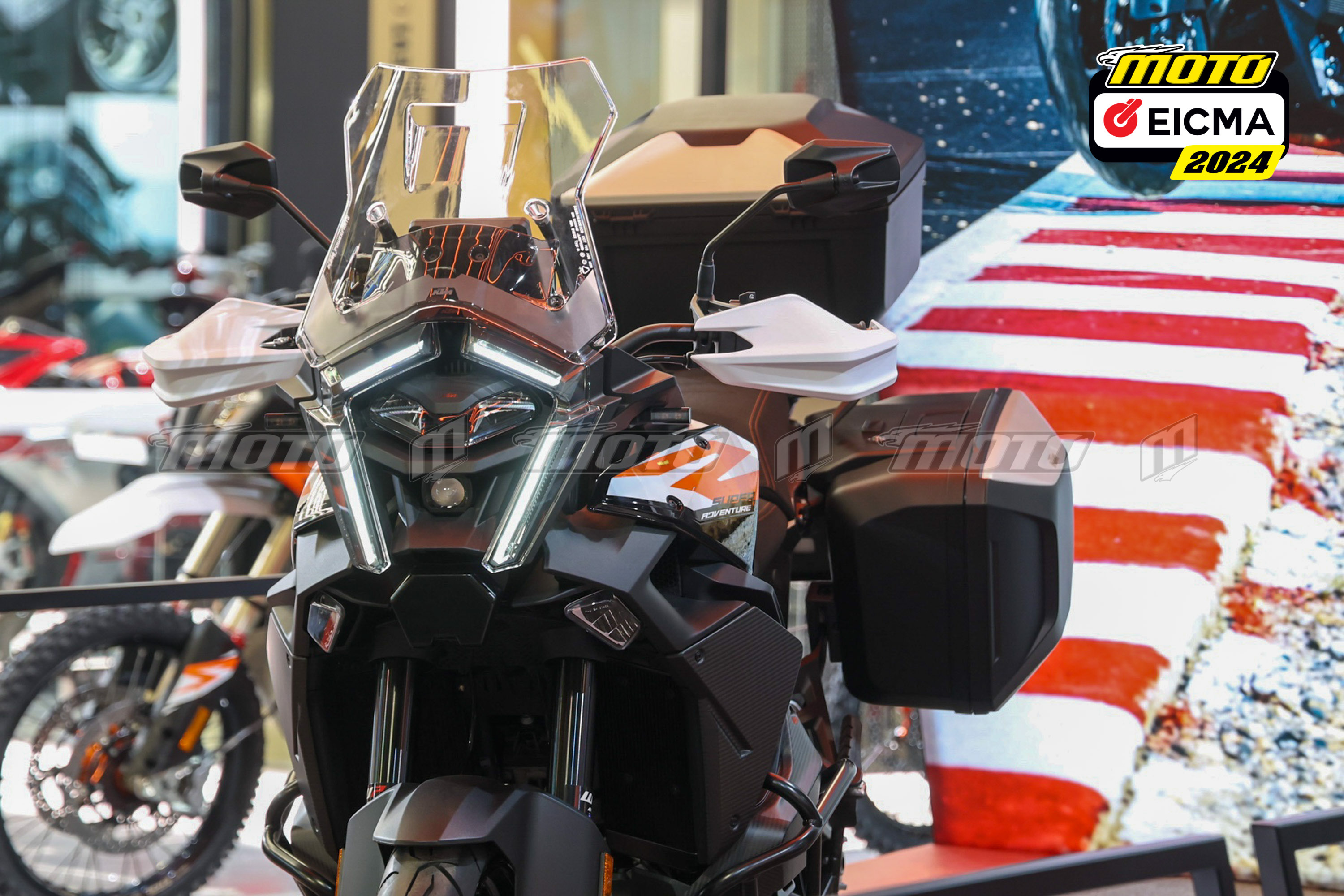 Ο νέος προβολέας έχει δυο μεγάλα στρογγυλά LED σώματα το ένα πάνω από το άλλο, ενώ περιμετρικά βρίσκουμε και μια νέα έκδοση των DRL LED φώτων της ΚΤΜ. LED είναι φυσικά και τα φλας αλλά και το πίσω φωτιστικό σώμα. Η μοτοσυκλέτα της έκθεσης έρχεται επιπρόσθετα και με δυο προβολάκια πάνω από το φτερό, που πιθανώς να ανήκουν στον έξτρα εξοπλισμό.