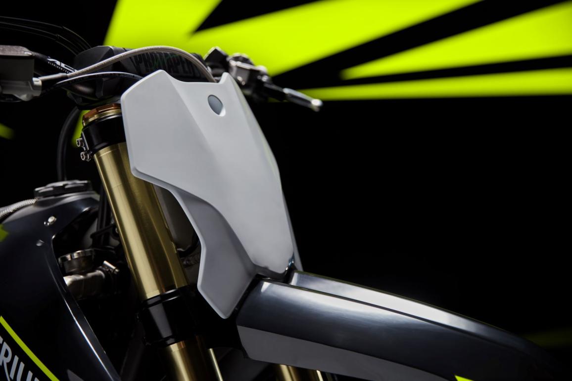 Η νέα TF 250-X είναι λεπτεπίλεπτη και το επιθετικό της στιλ θα ξεχωρίσει με την τόλμη του στην πίστα, όπου θα διακρίνεται από μακριά με την ξεχωριστή και μινιμαλιστική σχεδίαση των κίτρινων και μαύρων γραφικών της Triumph Racing.