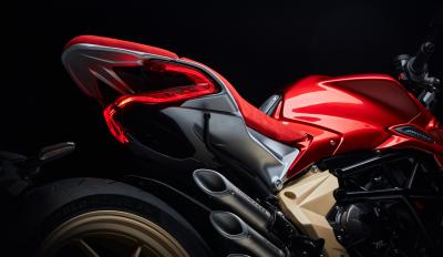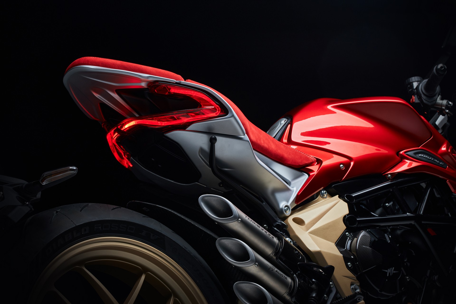 Ο σήμα κατατεθέν προβολέας ακολουθεί τη σχεδίαση του προηγούμενου αλλά είναι ολοκαίνουργιος με τα LED που κατεβαίνουν στην περιφέρειά του αλλά δεν τον κυκλώνουν να του δίνουν μια χαρακτηριστική ταυτότητα. Το ντεπόζιτο έχει επίσης χαρακτηριστική σχεδίαση Brutale και θυμίζει εκείνο της 800 αλλά είναι επίσης ολοκαίνουργιο και πιο στενό στα πλάγια και άλλαξε γιατί οι άνθρωποι της MV Agusta ήθελαν να το κάνουν τέλειο, όπως μας είπαν χαρακτηριστικά. Όλα μοιάζουν άλλα όλα είναι διαφορετικά με πι έντονες ίσως αλλαγές εκείνες που έχουν πραγματοποιηθεί στην ουρά της μοτοσυκλέτας -με επιρροές απί την Dragster-, όπως και στο τελικό της εξάτμισης, το οποίο αφήνει τις γωνίες και τις ακμές στην άκρη και επιστρέφει στις στρογγυλές απολήξεις που είναι παράλληλα και ξεχωριστές μεταξύ τους. Αυτή βέβαια είναι η εξάτμιση -από τιτάνιο- της Serie Oro, η οποία σχεδιάστηκε σε συνεργασία με την Termignoni και μένει να δούμε αν θα υπάρχουν διαφορές σε σχέση με εκείνη της στάνταρ έκδοσης της Brutale.