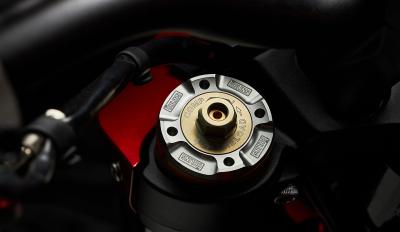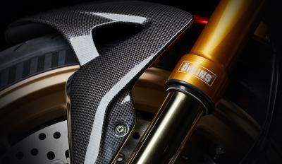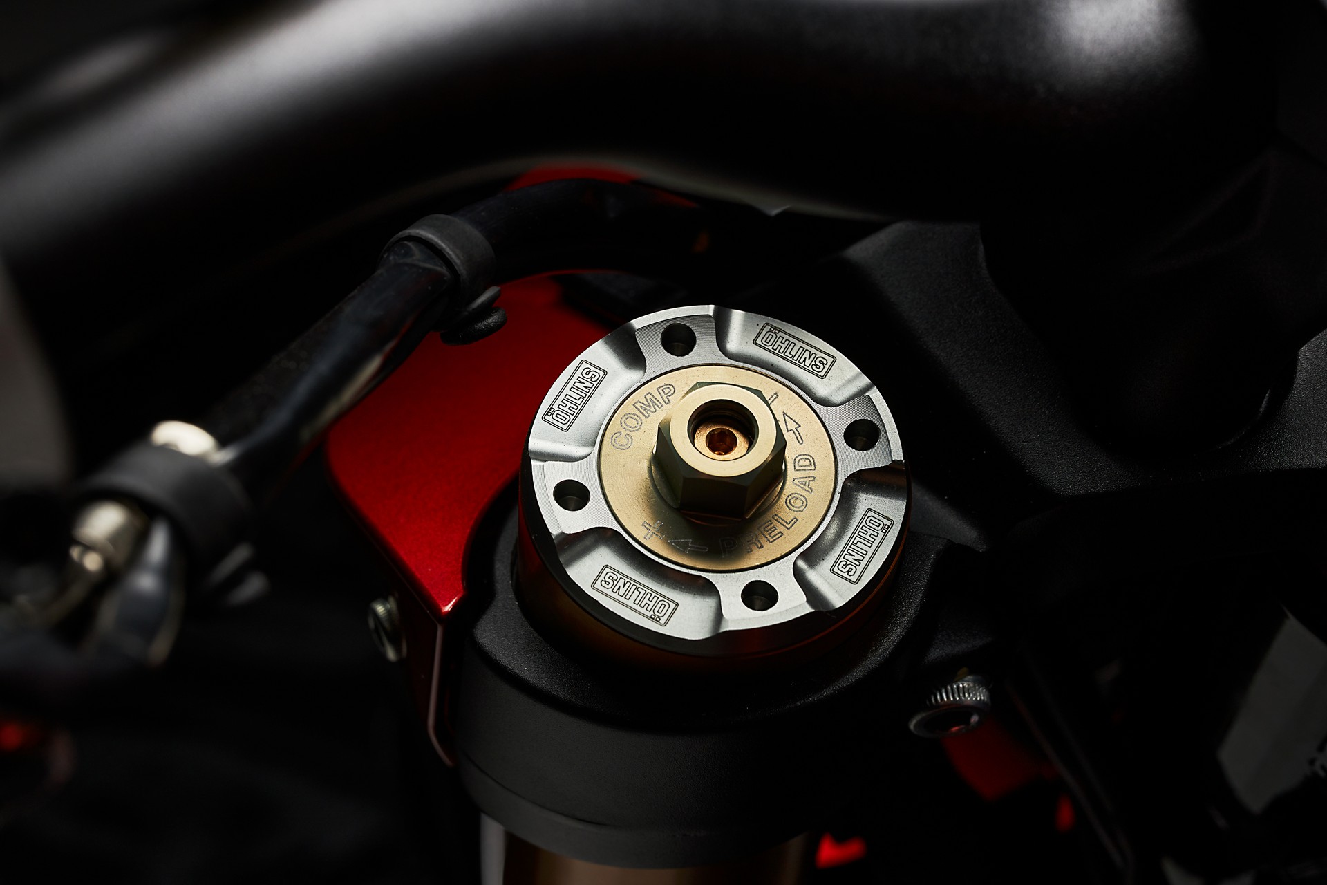 Στις αναρτήσεις προτιμήθηκε η Ohlins και το πλήρως ρυθμιζόμενο ανεστραμμένο πιρούνι NIX 30 των 43 χλστ. που φέρει στα καλάμια του επίστρωση νιτριδίου του τιτανίου (TiN) και το TTX 36 αμορτισέρ, επίσης πλήρως ρυθμιζόμενο. Ως ελαστικά πρώτης τοποθέτησης επιλέχθηκαν τα Pirelli Diablo Rosso IV.