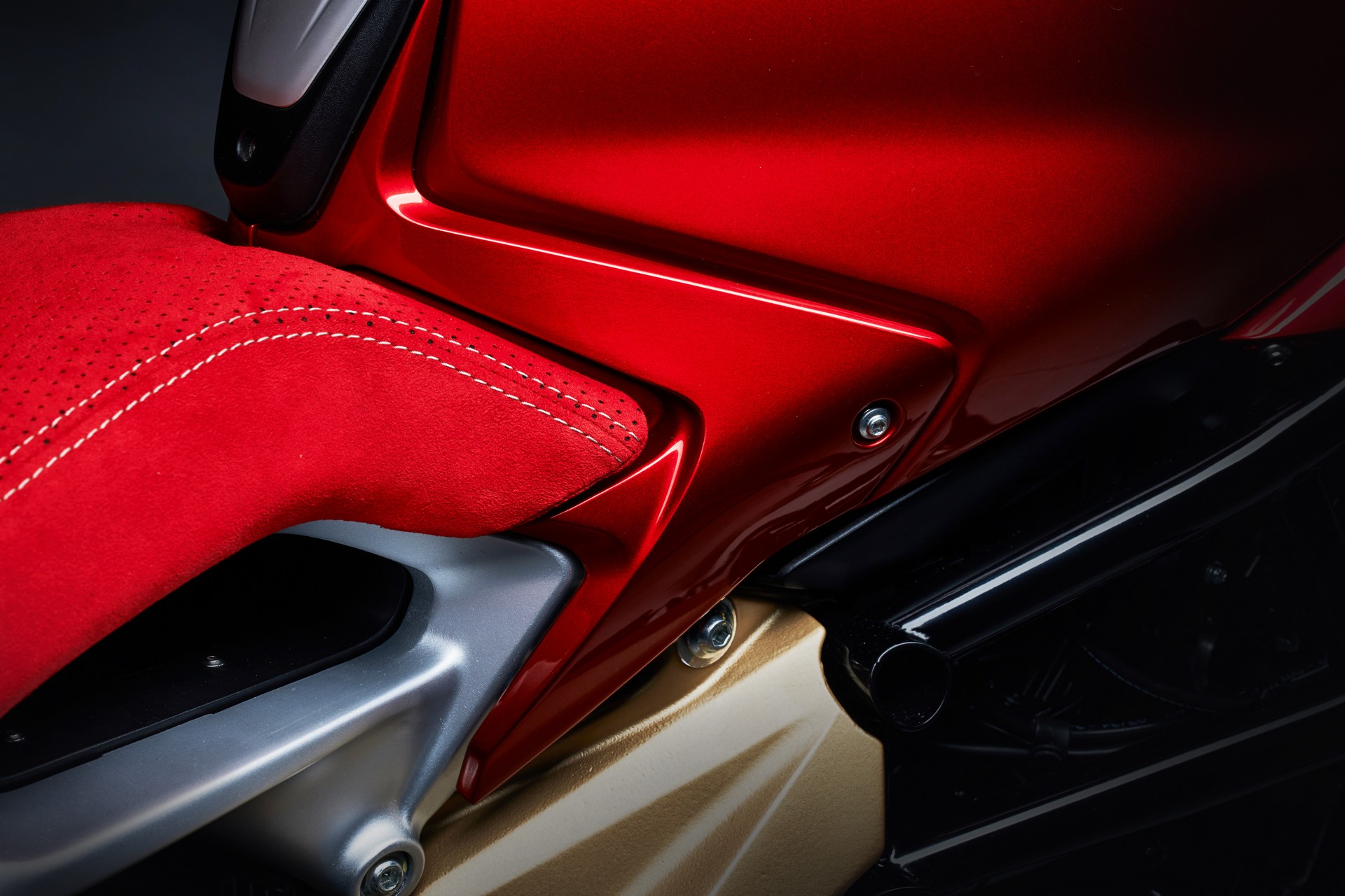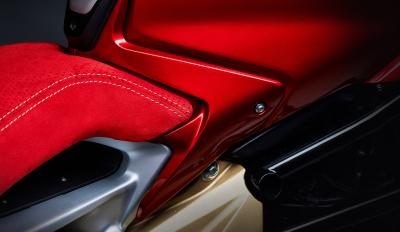 Στη Serie Oro το ανθρακόνημα έχει χρησιμοποιηθεί σε πολλά μέρη της μοτοσυκλέτας, αλλού βαμμένο και αλλού άβαφο για να μην το μπερδεύει ο παρατηρητής με ένα απλό πλαστικό κομμάτι, ενώ νέο είναι και το βαθύ μεταλλικό κόκκινο χρώμα ,το οποίο έχει ταιριάξει με το ασημί “Ago” της MV Agusta που φέρει το παρατσούκλι του Agostini.