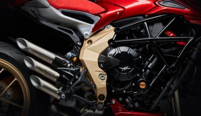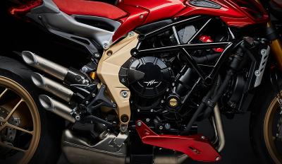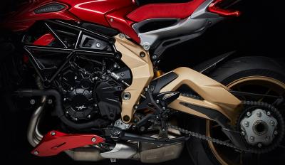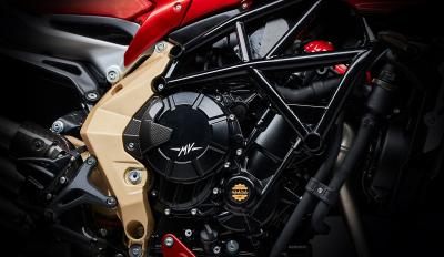 Ο 3κύλινδρος των 931 κ.εκ. της Enduro Veloce δεν φτιάχτηκε μόνο για την ιταλική adventure, ωστόσο δεν μετακόμισε και αυτούσιος στην Brutale και αποτελεί εξέλιξη του συγκεκριμένου μοτέρ που αύξησε σημαντικά την απόδοσή του και προσαρμόστηκε στο νέο του ρόλο. Με αντίστροφα περιστρεφόμενο στρόφαλο, ο κινητήρας παραμένει στα 931 κ.εκ. με τη μέγιστη ισχύ να έχει ανέβει στους 148 ίππους στις 11.200 σ.α.λ., ενώ όπως και στην Enduro Veloce, το 85% της ροπής, που έχει μέγιστη τιμή τα 10,9 χιλιογραμμόμετρα στις 8.400, είναι διαθέσιμο από τις 3.000 σ.α.λ. Η καμπύλη της ροπής αναμένεται και εδώ επίπεδη και για τη βελτίωση στην απόδοση ο πρώτος μεγάλος υπεύθυνος είναι η πλήρως ανασχεδιασμένη κεφαλή με βελτιστοποιημένο κύκλωμα ψύξης, μεγαλύτερες βαλβίδες από ατσάλι και ανασχεδιασμένη εισαγωγή και εξαγωγή. Νέες είναι και οι έδρες των βαλβίδων από υλικό που παρουσιάζει αυξημένη αντοχή στη φθορά, ενώ νέοι είναι και το προφίλ των εκκεντροφόρων, ενώ η συμπίεση έχει ανέβει στο 13,4:1. Οι αλλαγές συνεχίζονται στη νέα φλάντζα κεφαλής, τα νέα πιστόνια και την αναθεώρηση του κυκλώματος λίπανσης, όπως και των θαλάμων καύσης. Νέο τέλος είναι το σώμα ψεκασμού των 50 χλστ. Πολλές από τις αλλαγές που έκαναν οι Ιταλοί δεν αφορούν αποκλειστικά την αύξηση της απόδοσης και έχουν να κάνουν και με τη διατήρηση της αξιοπιστίας του κινητήρα (βλ. λίπανση και ψύξη) καθώς θέλουν οι μοτοσυκλέτες τους να είναι πλήρως ανταγωνιστικές και σε αυτόν τον νευραλγικό τομέα με την 5ετή εργοστασιακή εγγύηση της MV Agusta να ισχύει και για το νέα Brutale.